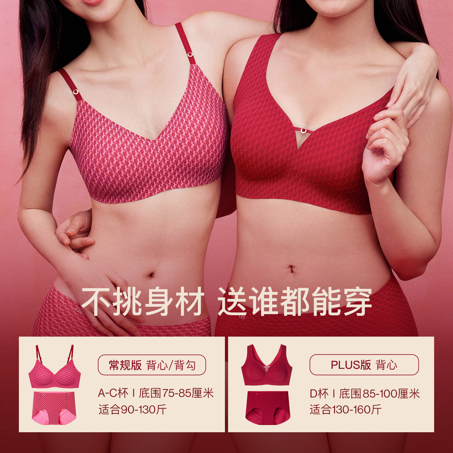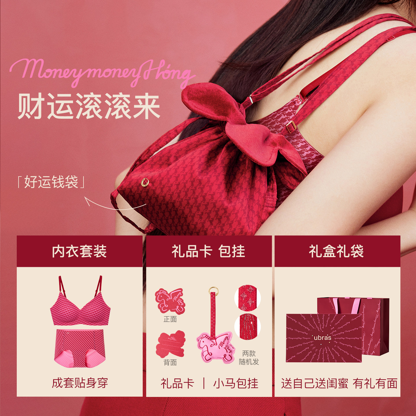 虞书欣同款ubras生肖马年大红盒无尺码本命年红色内衣文胸套装女