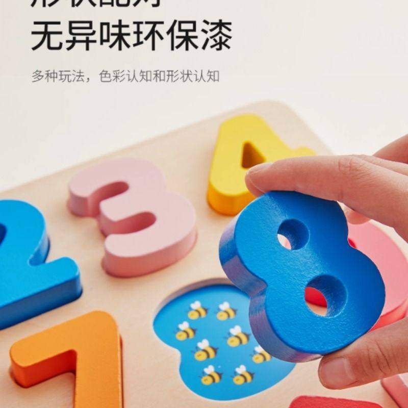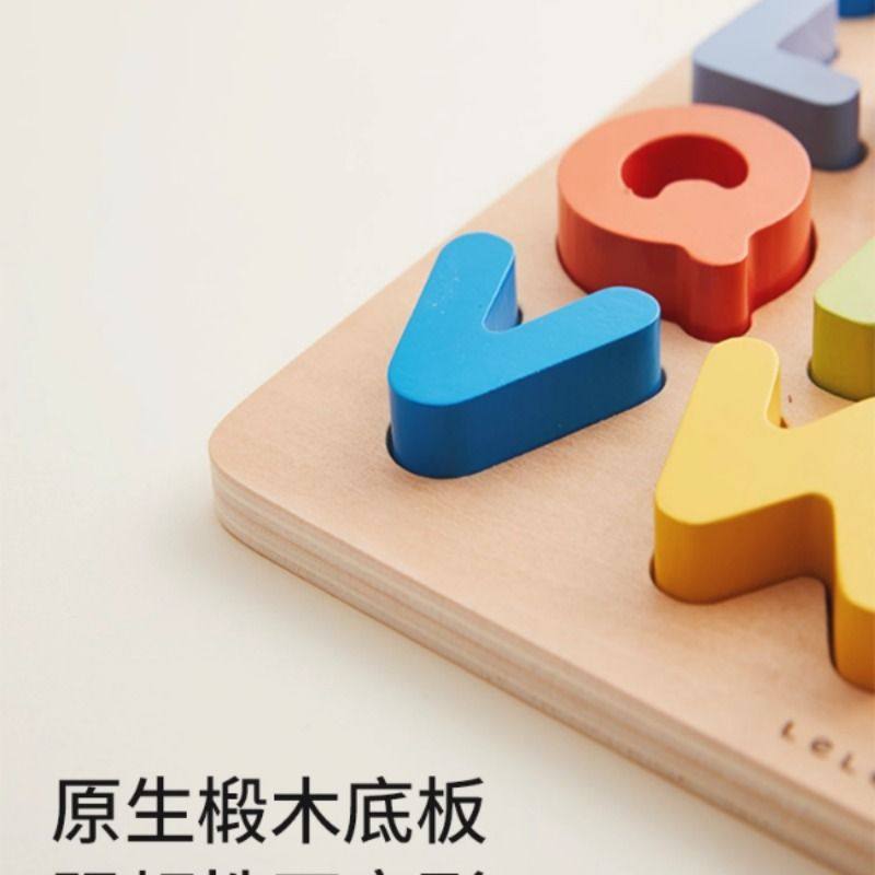 乐乐兔幼儿数字字母认知板儿童早教益智木质立体拼图宝宝积木玩具