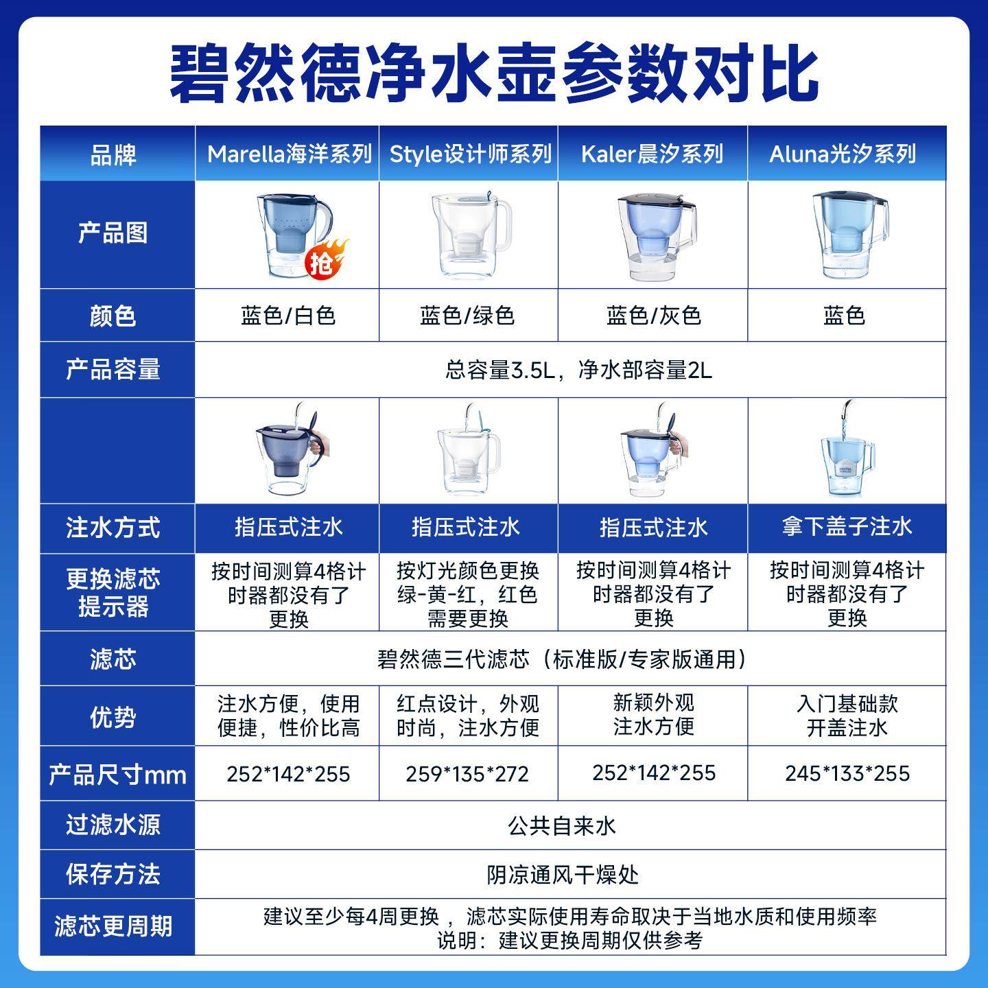 碧然德净水壶过滤器家用自来水净水器厨房去垢德国brita过滤水壶