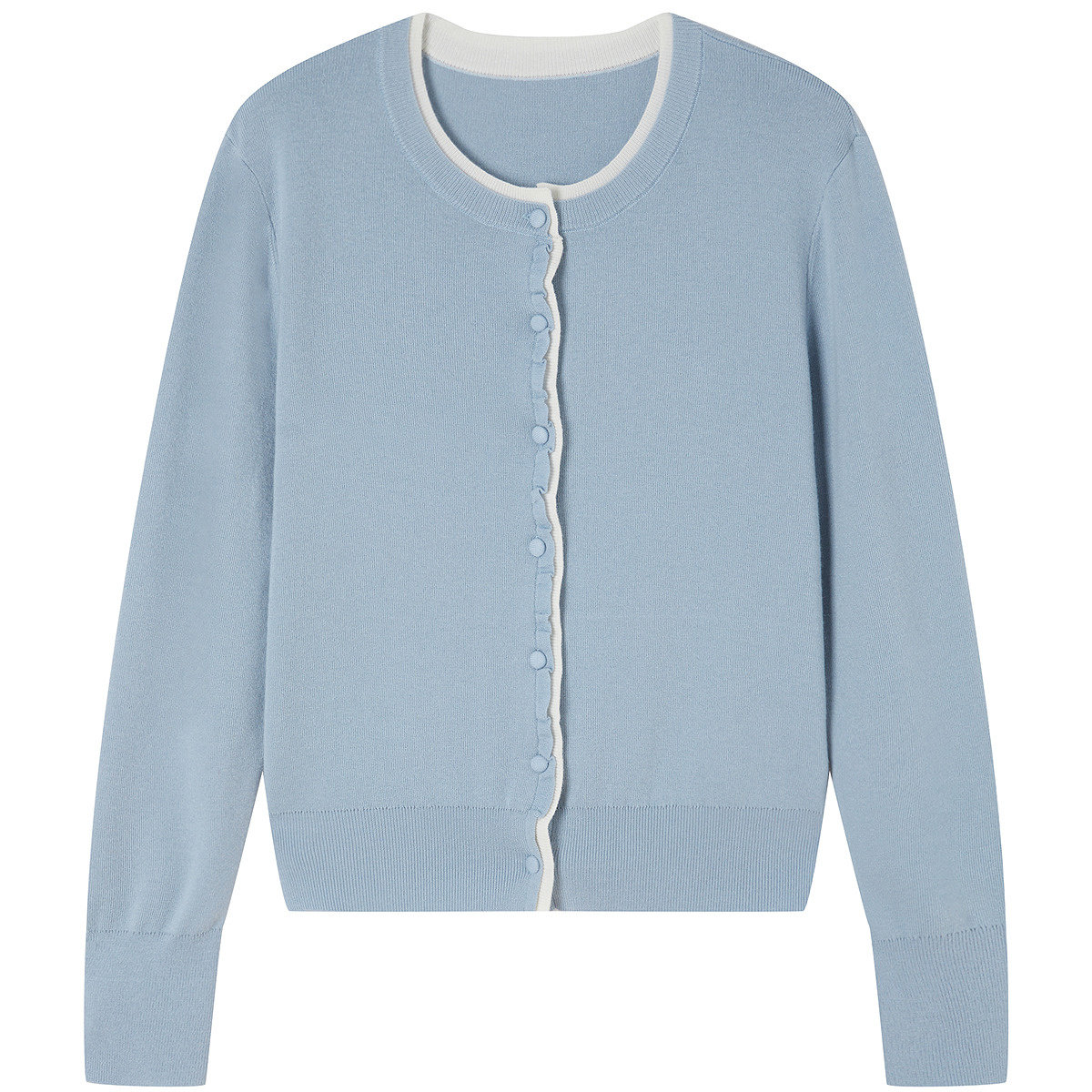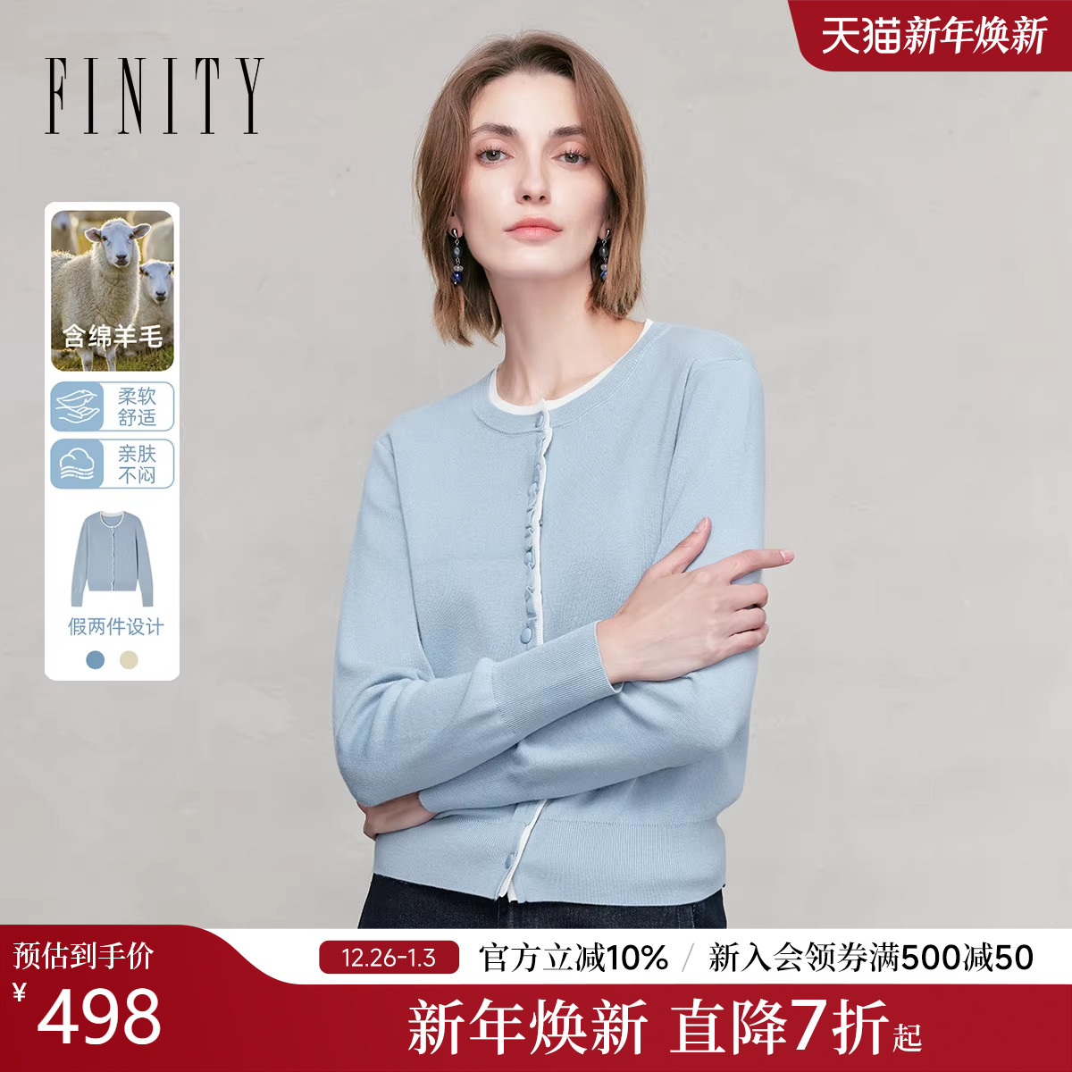 FINITY菲妮迪针织衫2025年秋季新款简约气质撞色圆领设计感上衣女