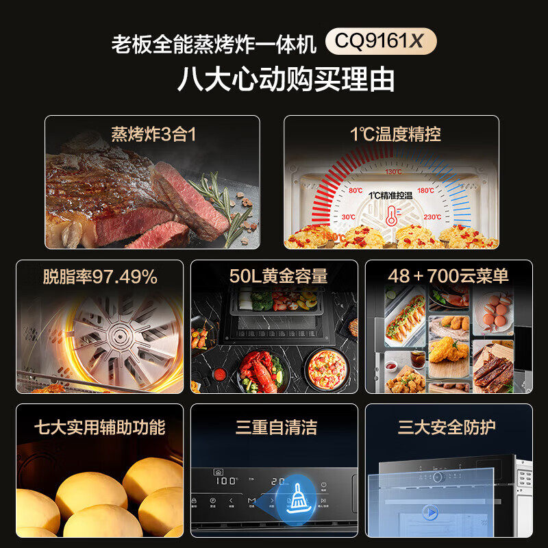 Robam/老板 KZQS-45-CQ9161X蒸烤箱一体机嵌入式50L蒸烤炸一体机