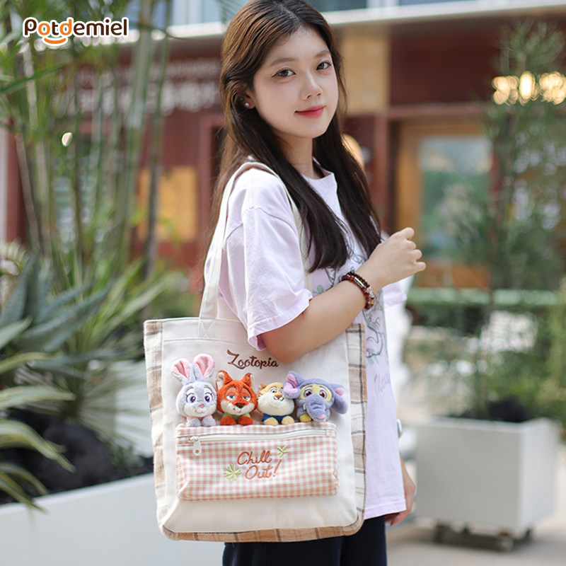 potdemiel蜂蜜罐疯狂动物城单肩帆布通勤学托特包新款礼物