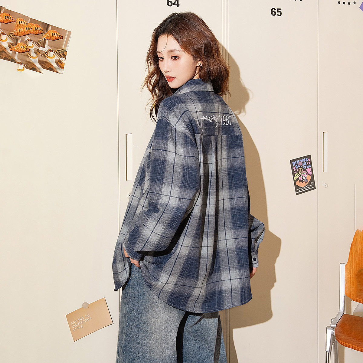 唐狮秋季衬衫女新款百搭流行开衫长袖格子复古时尚上衣TM