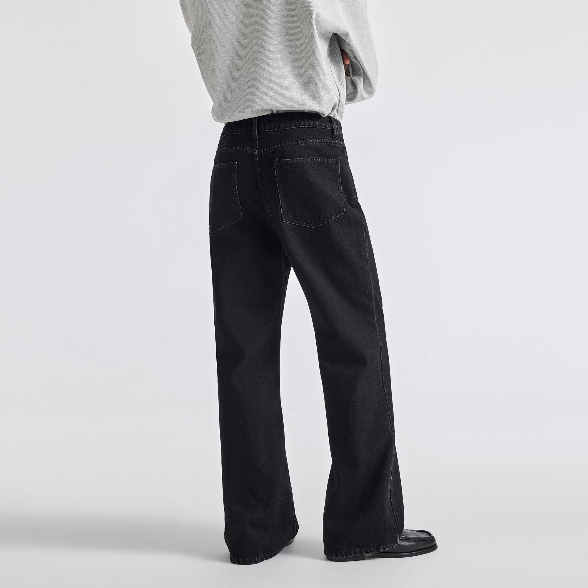 ZLAYCO 美式高街黑色牛仔裤男女vibe百搭直筒基础微喇显瘦长裤子