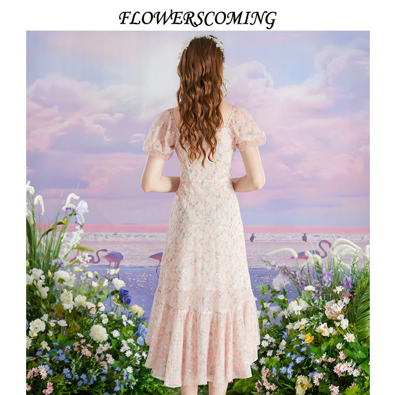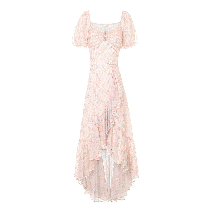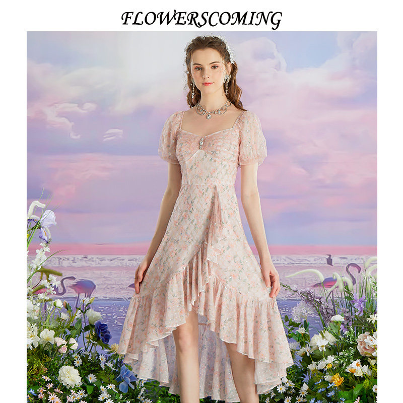 花儿开了2025夏季新款法式雪纺印花连衣裙女气质修身设计感公主裙