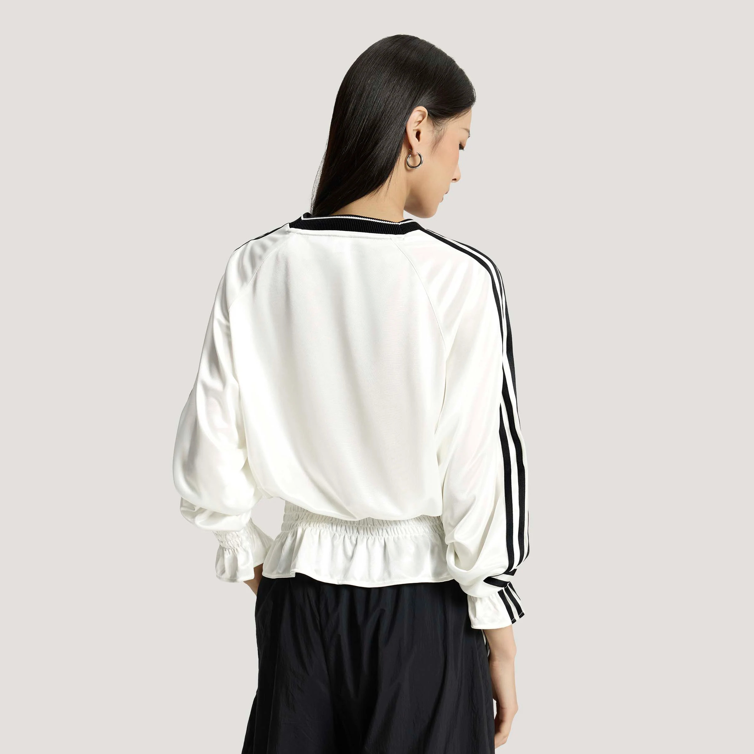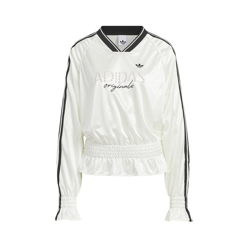 adidas阿迪达斯三叶草抽褶针织宽松球衣T恤春夏女长袖上衣 KS2879
