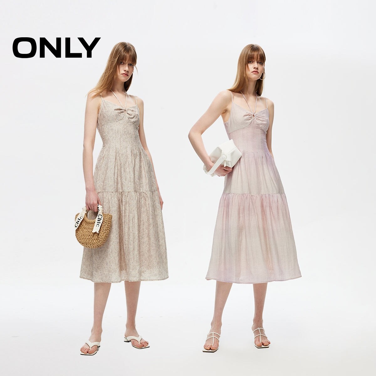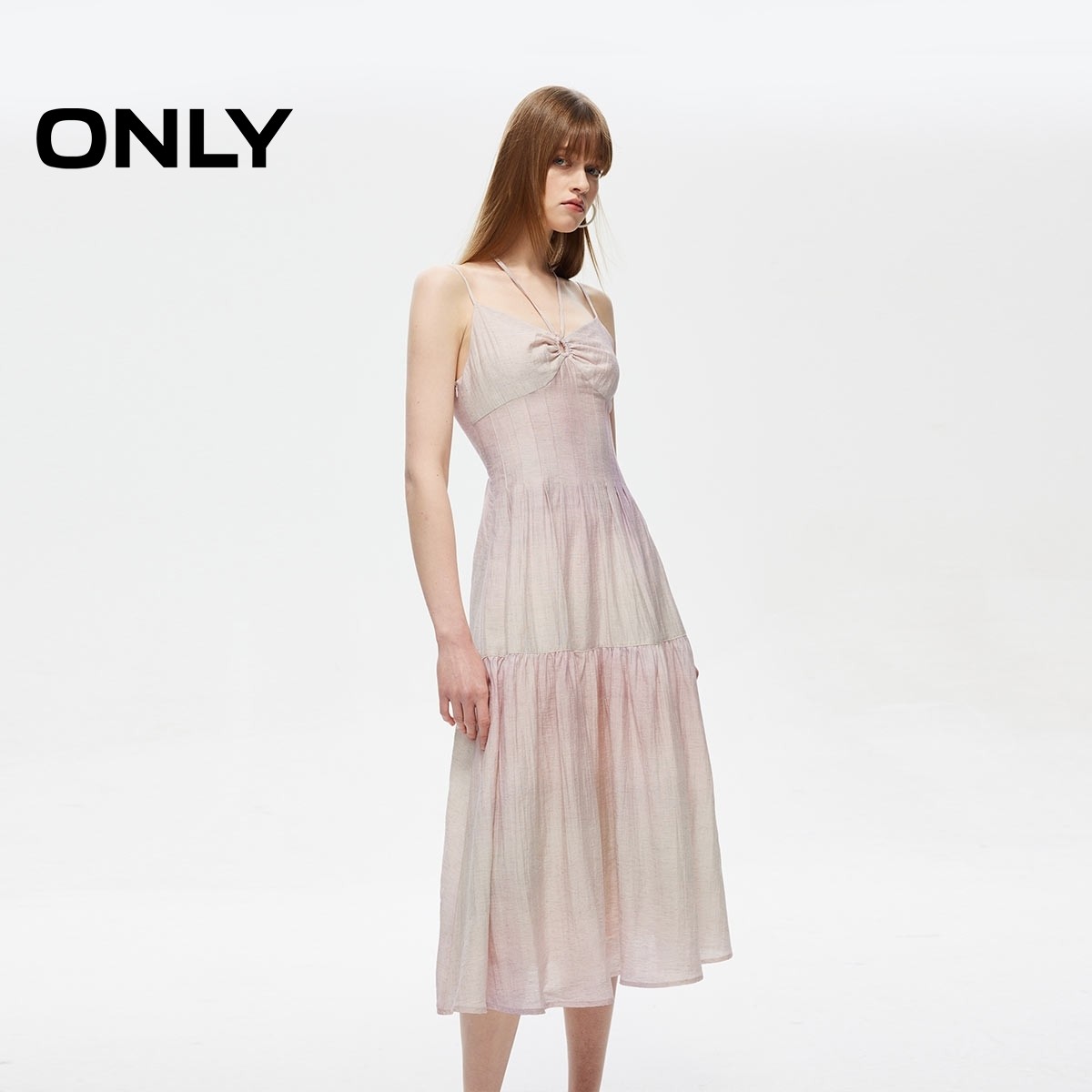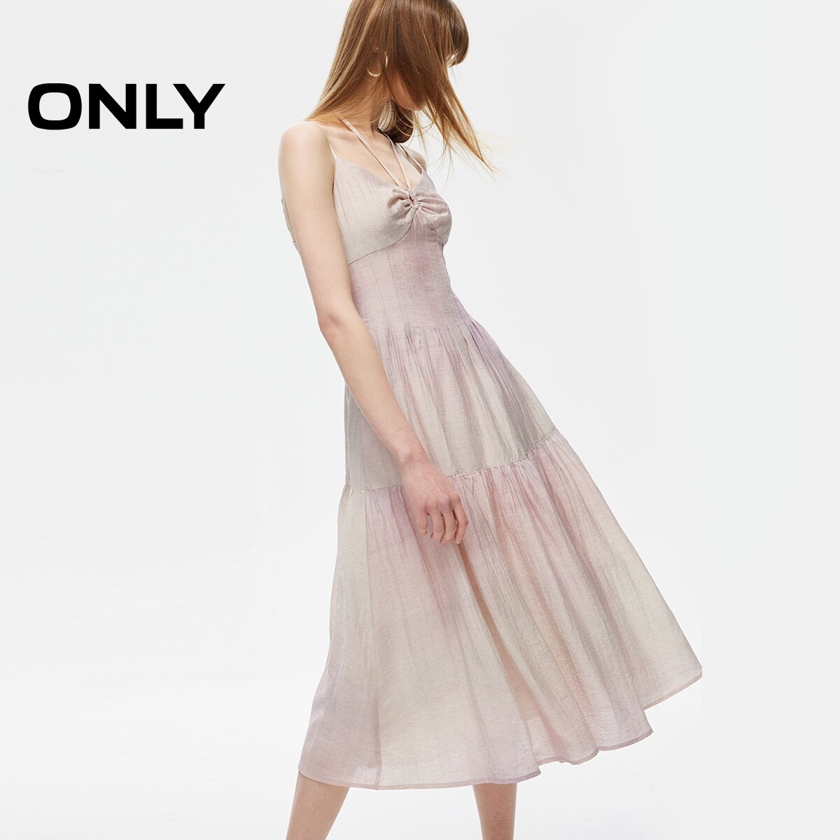 【ONLY奥莱】春季新款简约气质中长款挂脖系带连衣裙女