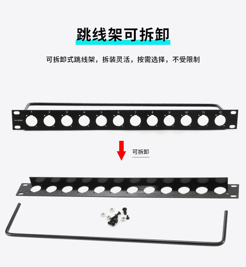 24位多路空白跳线板D型插座机架模块机柜卡侬面板塞孔板2U带绑线