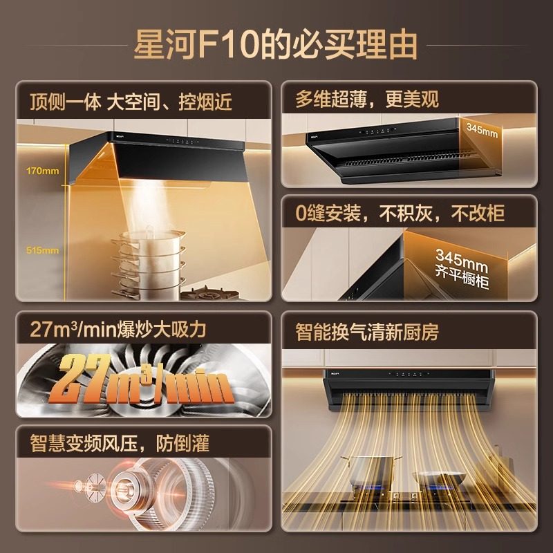【李佳琦推荐】名气油烟机星河f10家用大吸力厨房套装老板出品
