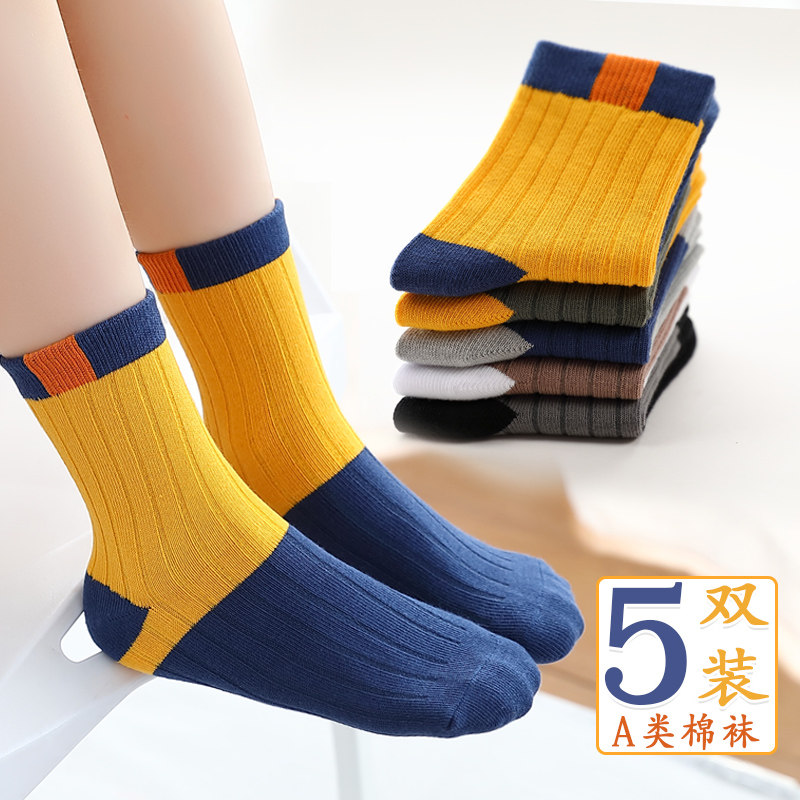 纯棉童袜春秋款夏季薄款防臭不起球男女袜子全棉中筒袜时尚儿童袜