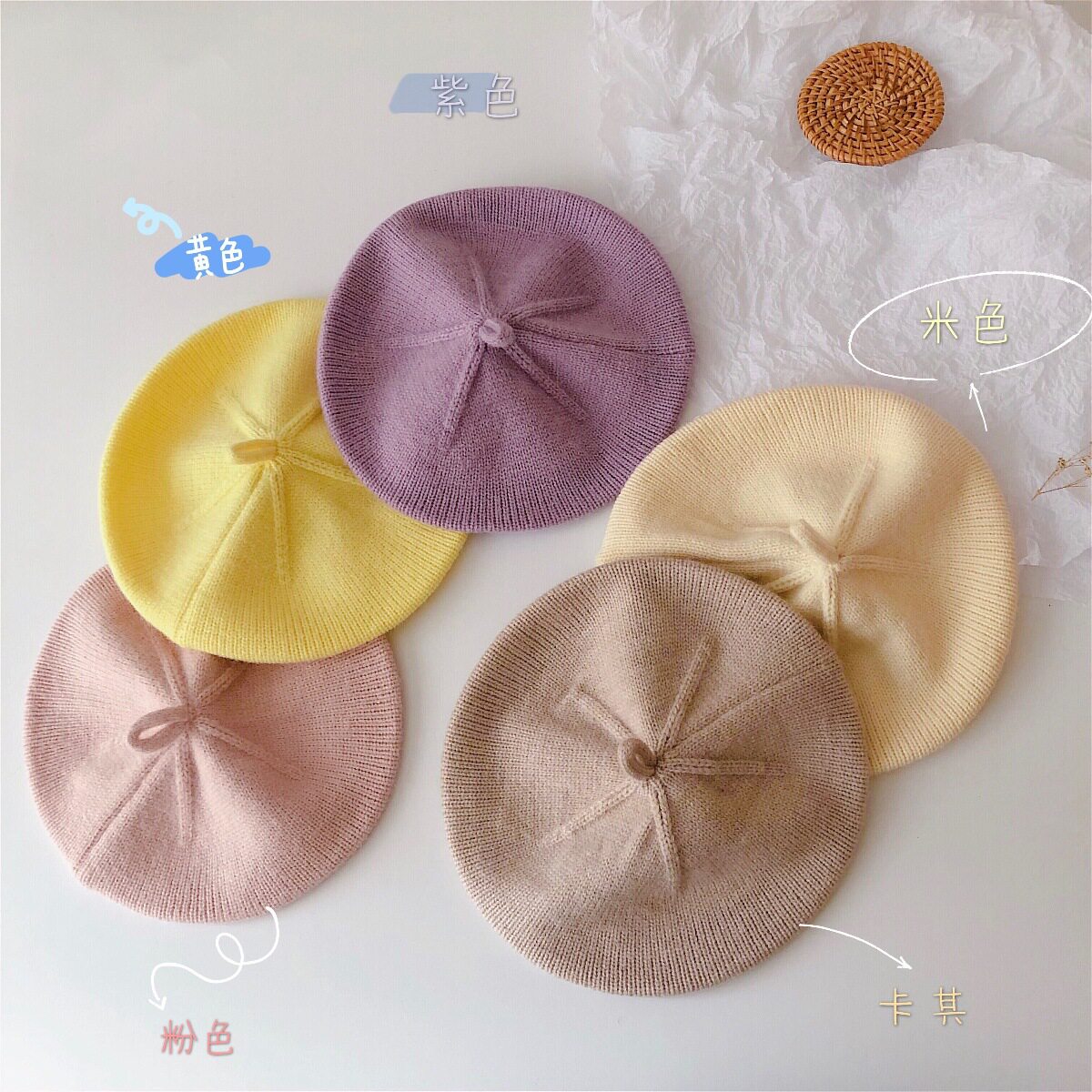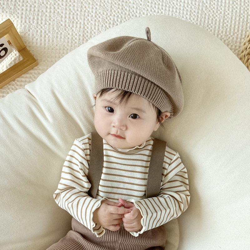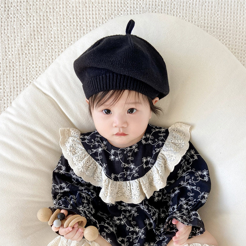 春秋季婴儿帽子韩系贝雷帽薄款透气针织帽女童可爱毛线男宝画家帽