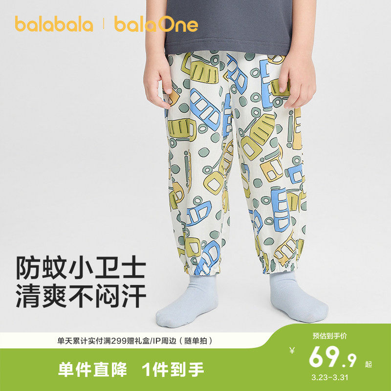 巴拉巴拉儿童裤子男童女童夏季防蚊裤小童宝宝透气外出休闲裤印花