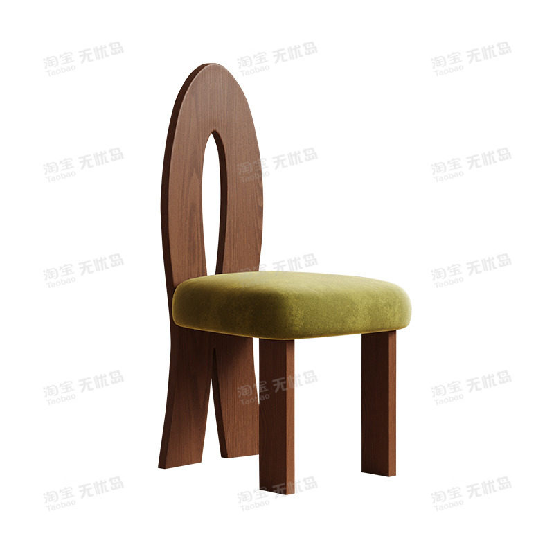 轻奢侘寂风餐椅皮软包设计师现代弯曲木咖啡厅实木椅子家用书房椅