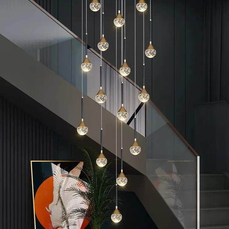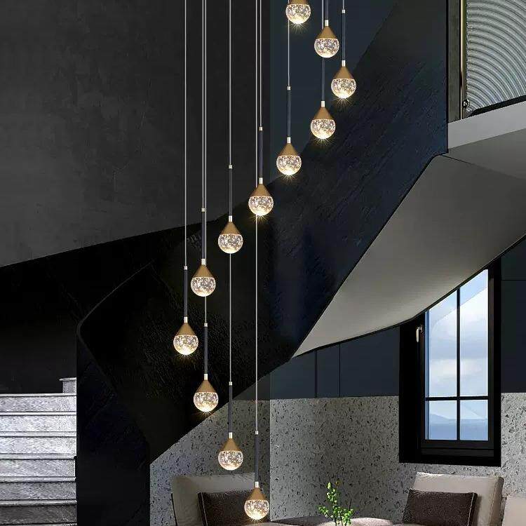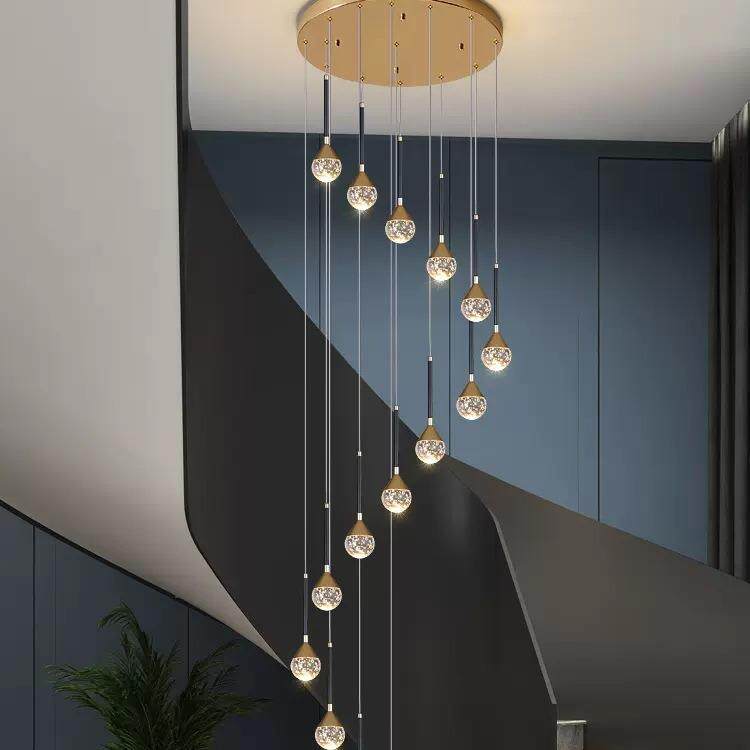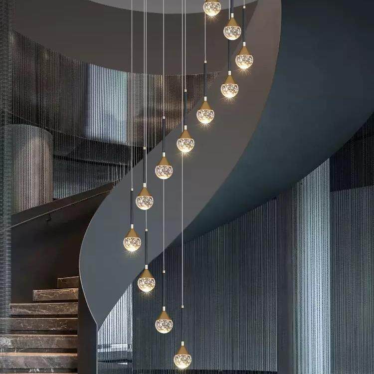 楼梯吊灯现代简约水晶轻奢LED节能别墅复式楼梯间旋转中空loft灯