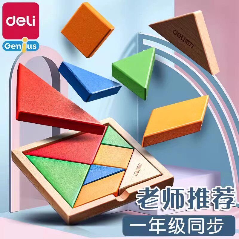 得力七巧板小学生专用一年级下册教具幼儿园智力拼图磁力儿童玩具数学教具全套3到6岁男孩女孩木质早教玩具