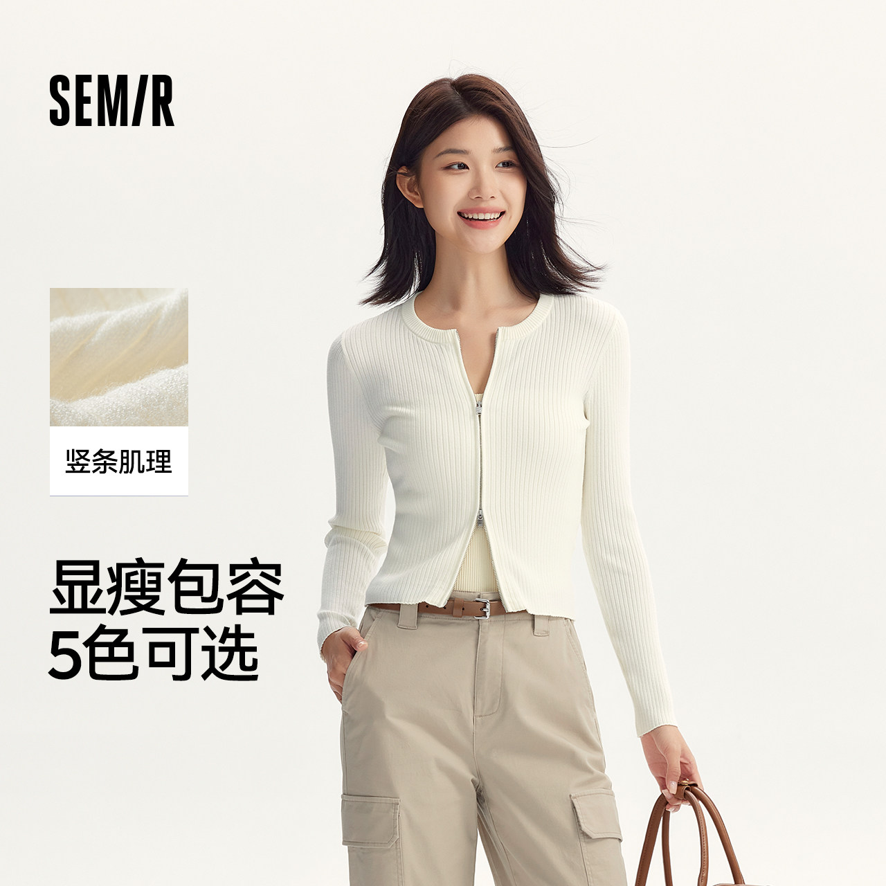 森马针织开衫女短款紧身显瘦正肩气质秋季温柔系纯色圆领上衣百搭