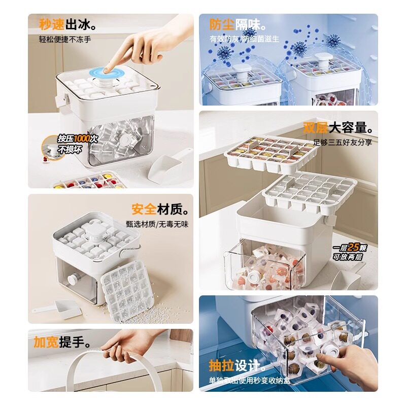 浦司冰格冰块模具制冰盒冻冰球神器磨具大容量家用食品级冰箱冰桶