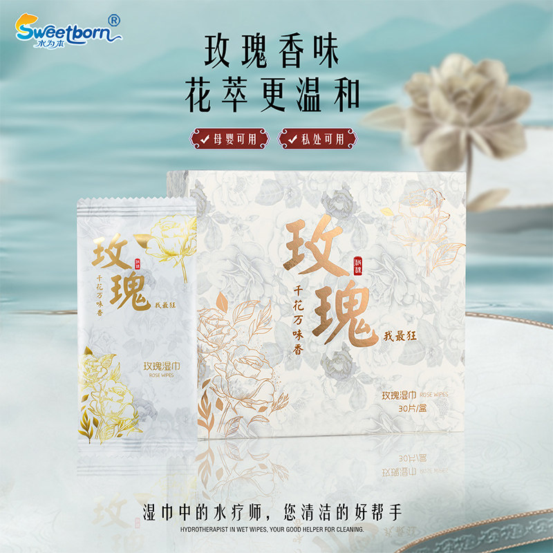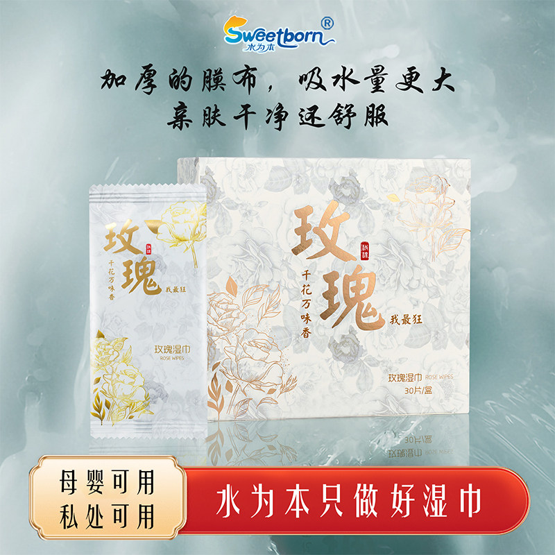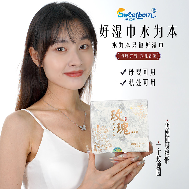 水为本玫瑰湿纸巾小包便携上学私处湿巾婴儿母婴级手口专用香味