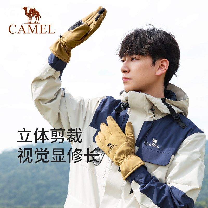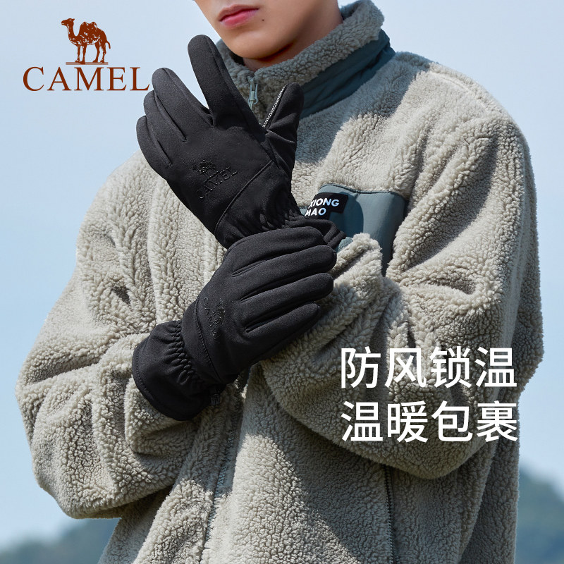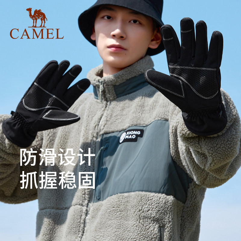 骆驼户外登山手套男女内里加绒防风防寒骑车手套防滑可触屏手套