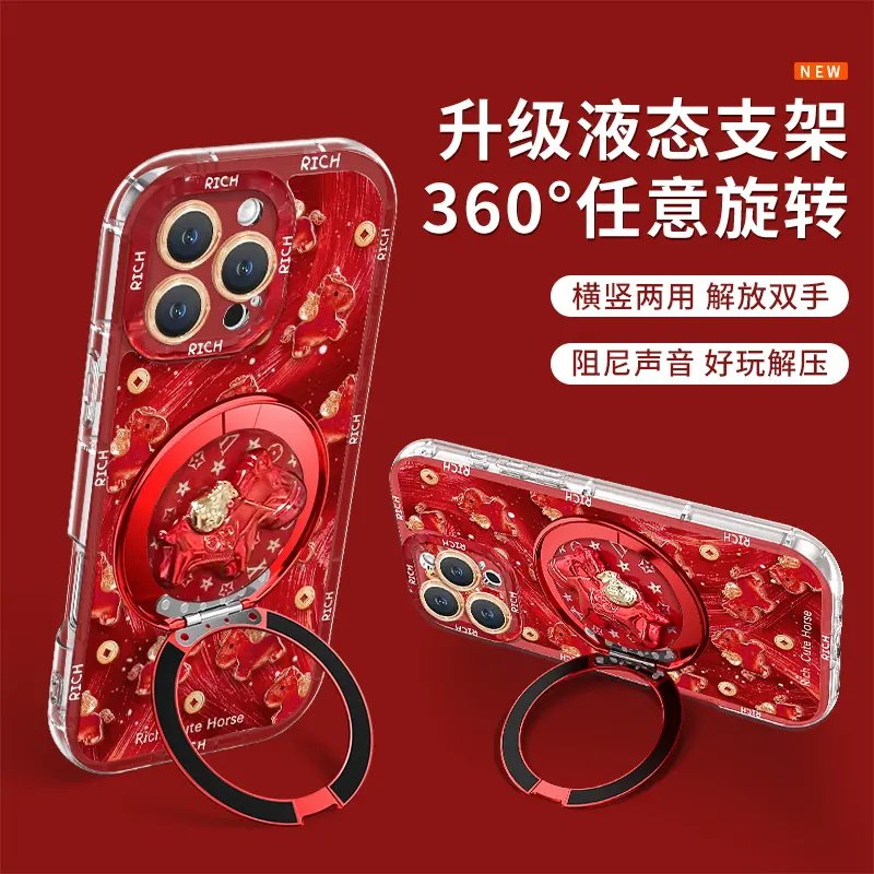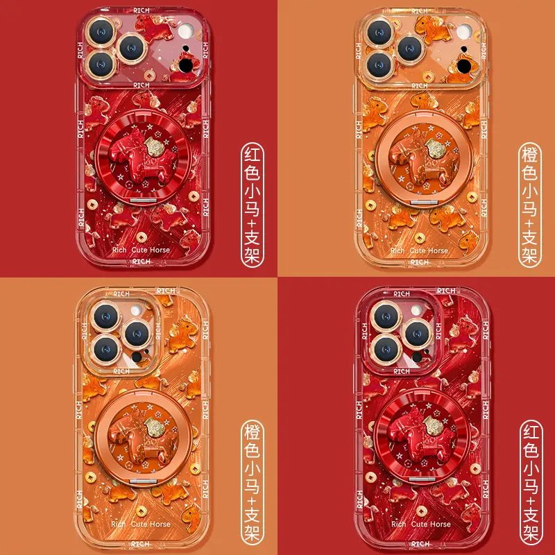 金币小马适用苹果17PROMAX手机壳iPhone16/15新年红华为PURA80可爱NOVA14高级MATE60PRO防摔VIVOS50小米OPPO