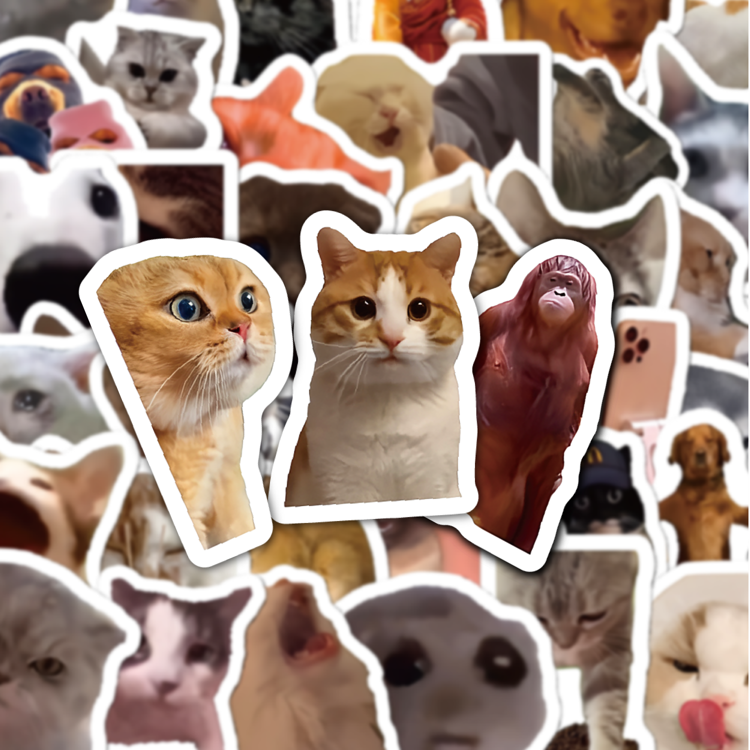 网红猫meme表情包贴纸搞笑抽象可爱手机壳打包素材封口贴桌面diy防水