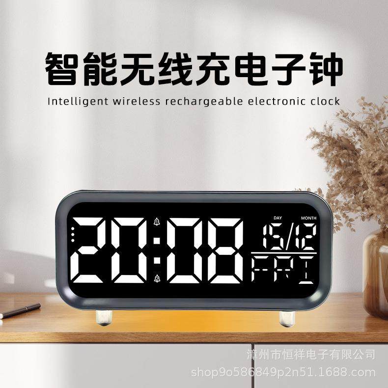 亚马逊跨境新款LED无线充台钟多功能夜灯时钟手机无线充台钟