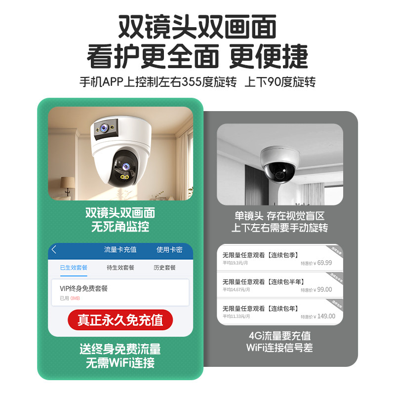 小米智能摄像机4双摄360全景室内家用监控远程手机无线网络摄像头