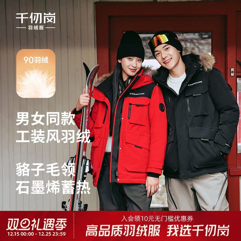 千仞岗冬季羽绒服新款大毛领短款加厚防风外套情侣款男女同款
