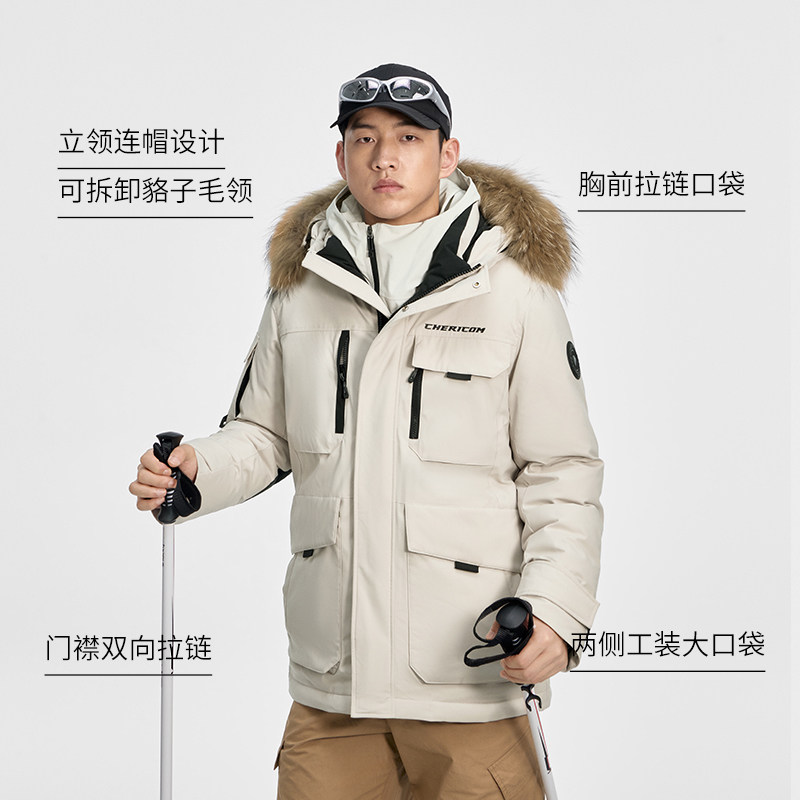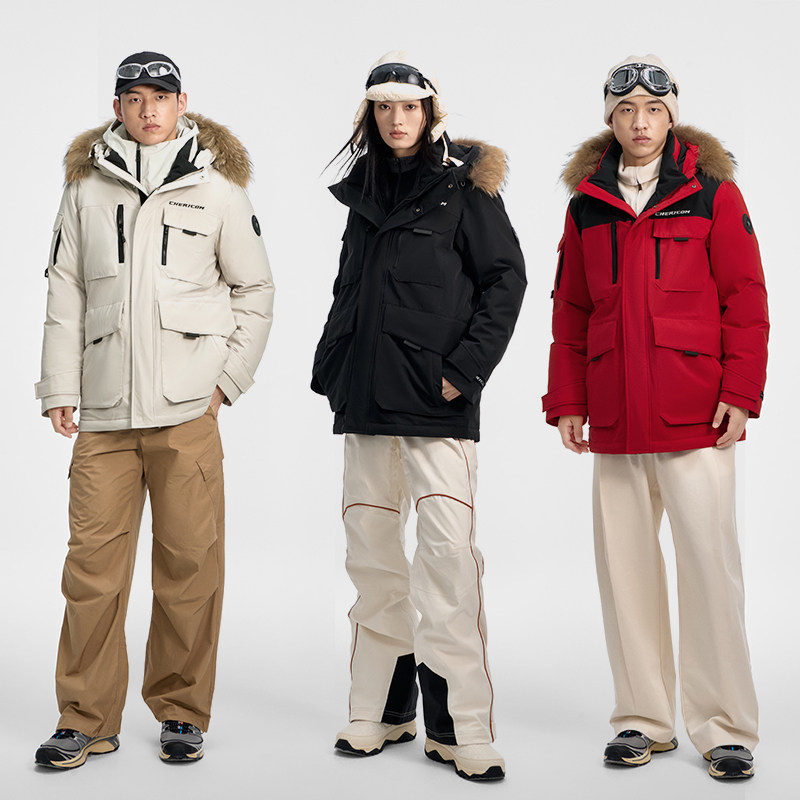 【李佳琦直播间】雪中飞2025鹅绒男女貉子毛领复古工装派克羽绒服
