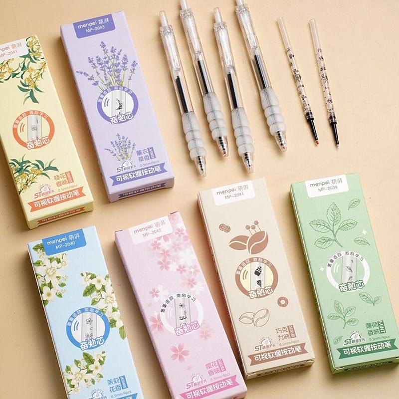 萌湃香氛按动中性笔ST黑笔香薰笔香味笔签字笔圆珠笔水笔高颜值少女心带香味笔速干顺滑刷题笔碳素笔芯文具