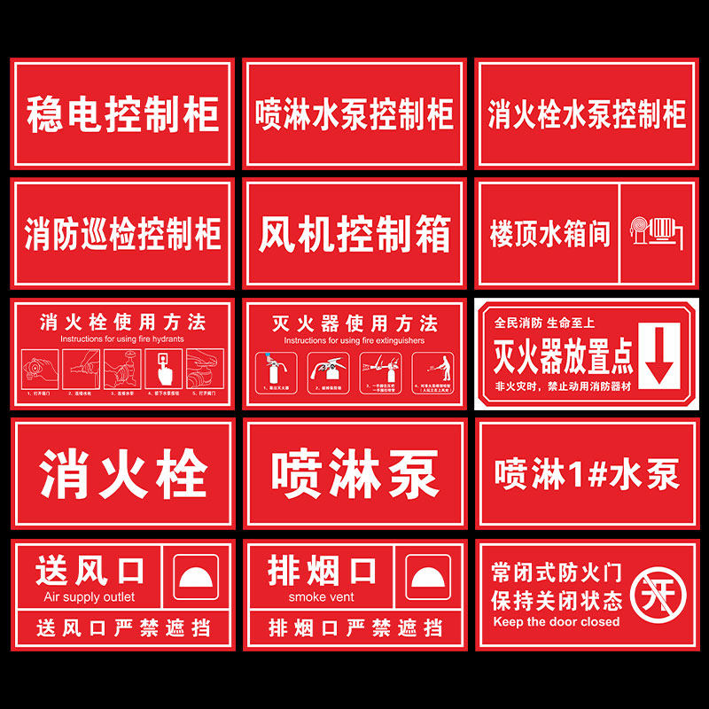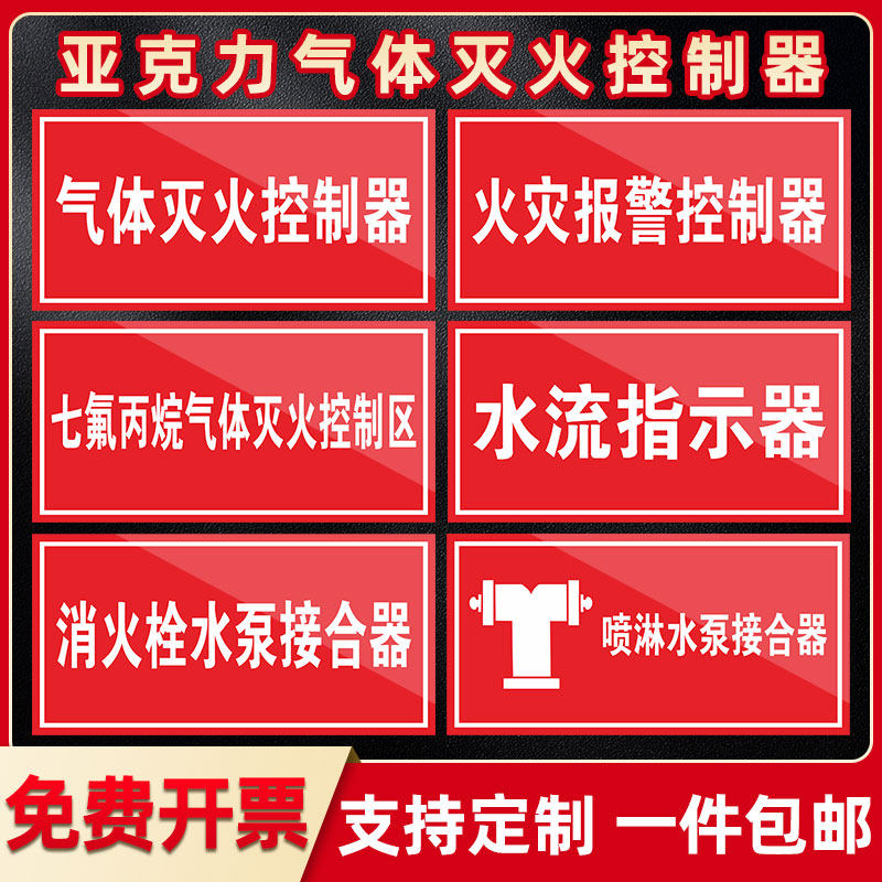 气体灭火控制器亚克力标识牌七氟丙烷气体灭火控制区火灾报警标志