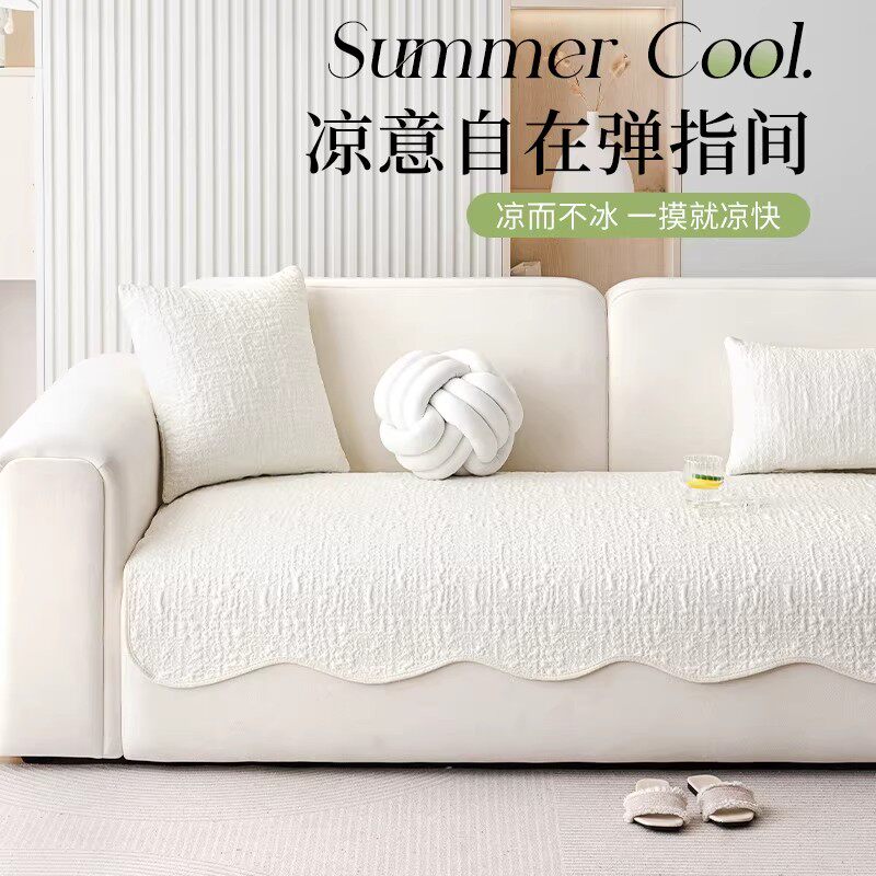 夏季异形沙发凉席垫子2026新款奶油风固定防滑冰丝夏天沙发垫夏用