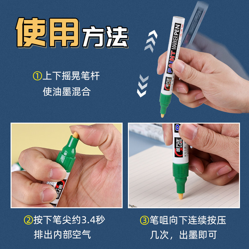 金万年白色油漆笔工业不掉色油漆记号笔轮胎笔补漆笔金色防水黑色