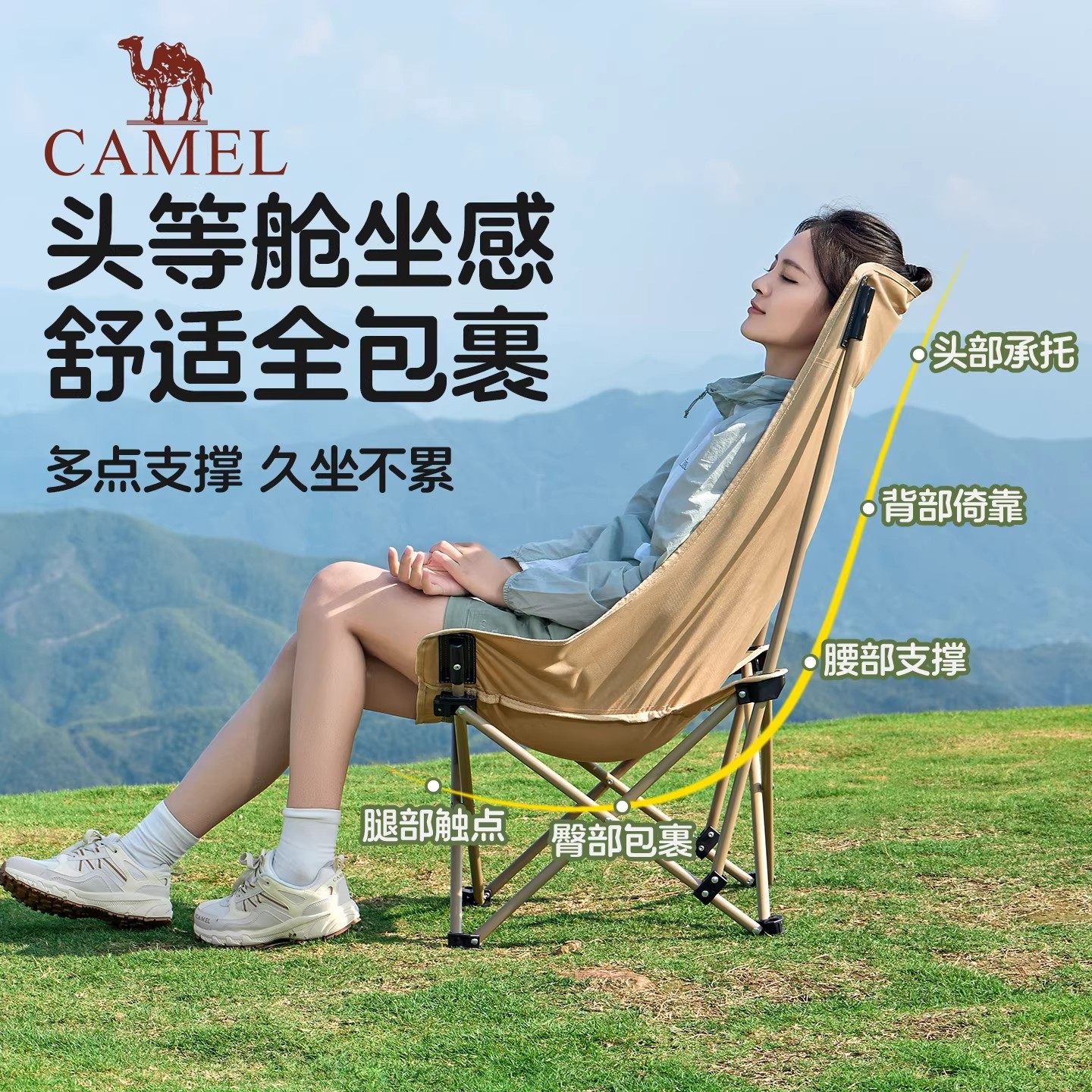 骆驼户外躺椅便携露营椅子坐躺两用办公室午休椅休闲折叠椅云朵椅