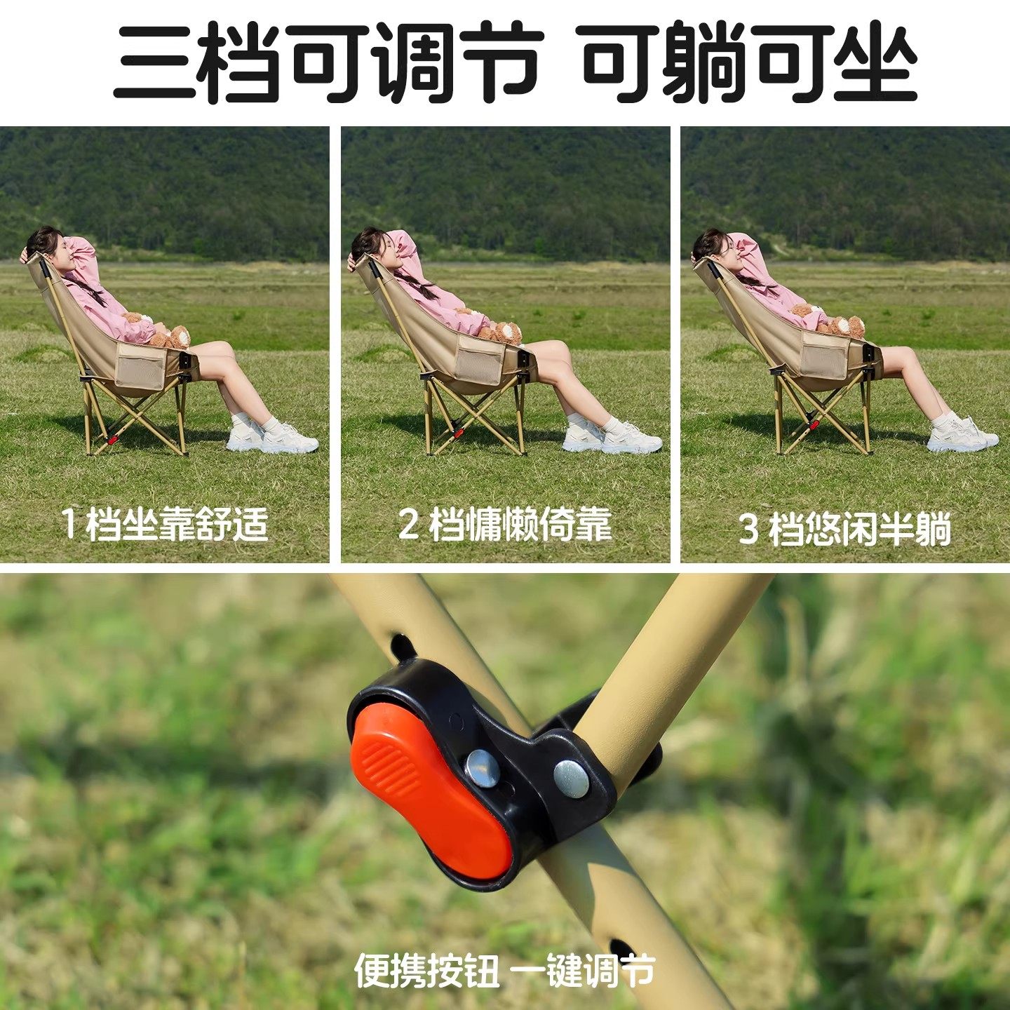 户外折叠椅加高月亮椅可调节露营椅子便携式躺椅沙滩钓鱼野餐椅凳