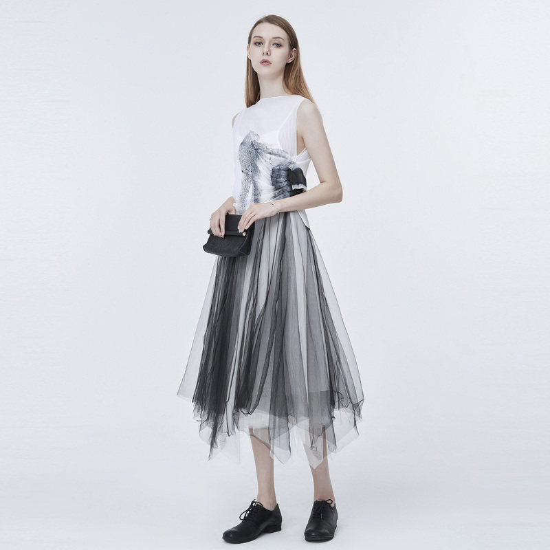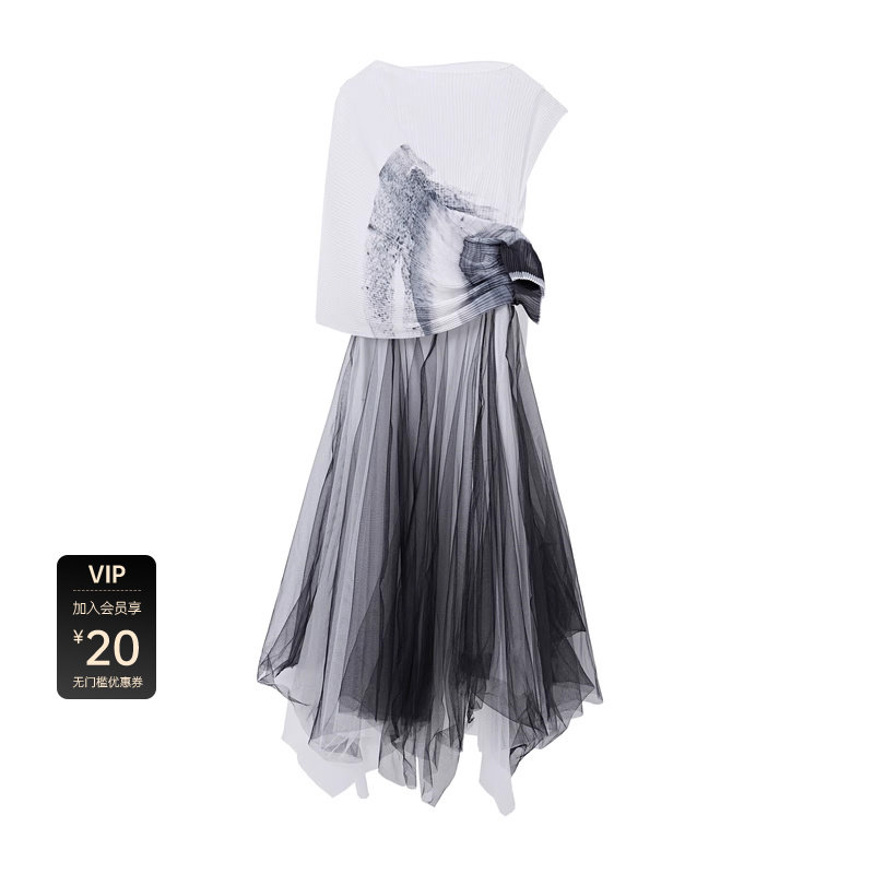 【新品上新】sdeer圣迪奥一字领肌理拼接网纱连衣S20281285
