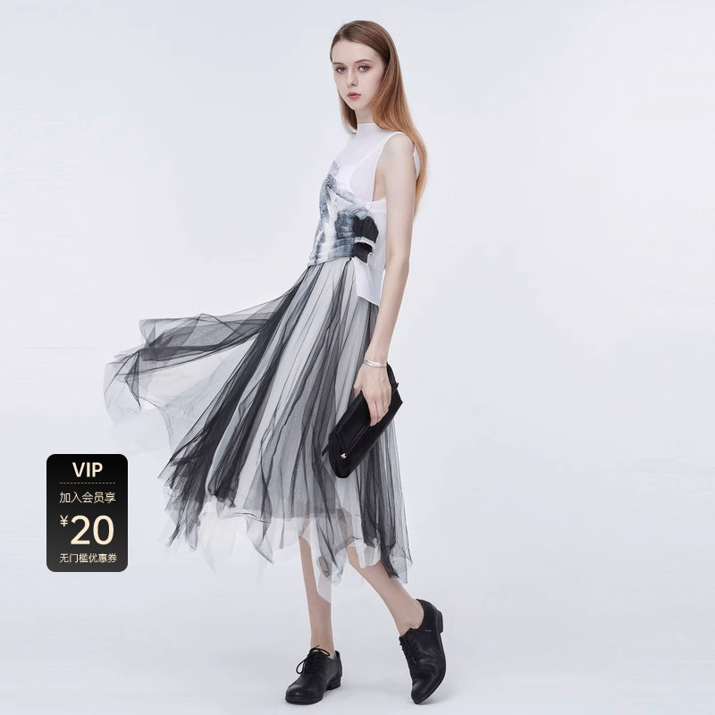 【裙子清仓99元起】半练带胸垫连衣裙秋季打底背心裙黑白吊带裙子