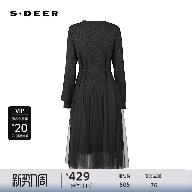 sdeer圣迪奥女装26年新品优雅圆领收腰网纱不规则连衣裙S261Z1202