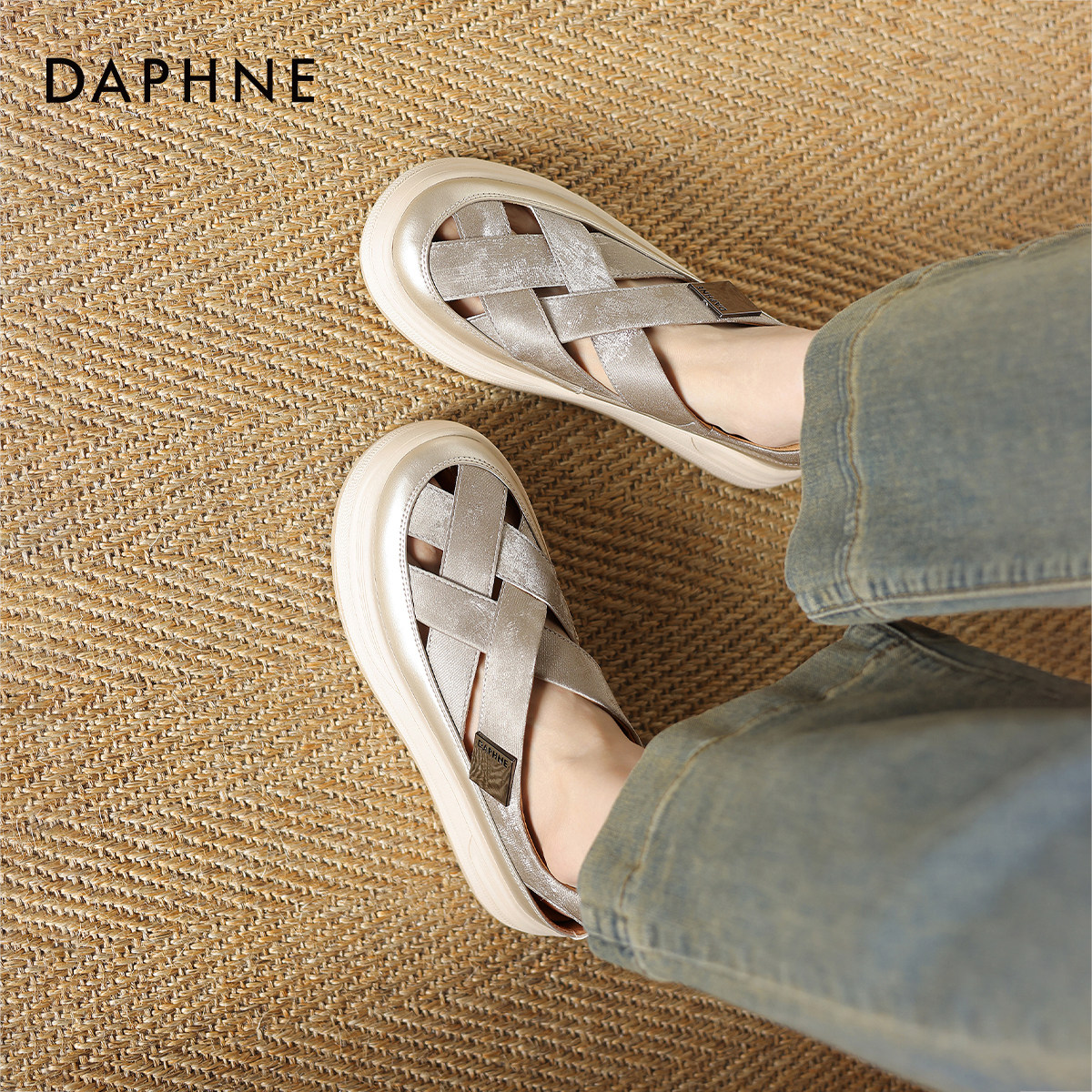 达芙妮包头罗马凉鞋女款2026新款夏季可外穿不累脚编织厚底猪笼鞋