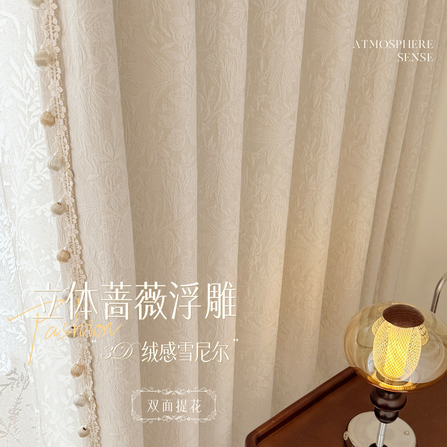 双面蔷薇花雪尼尔提花窗帘家用卧室客厅全遮光高级感