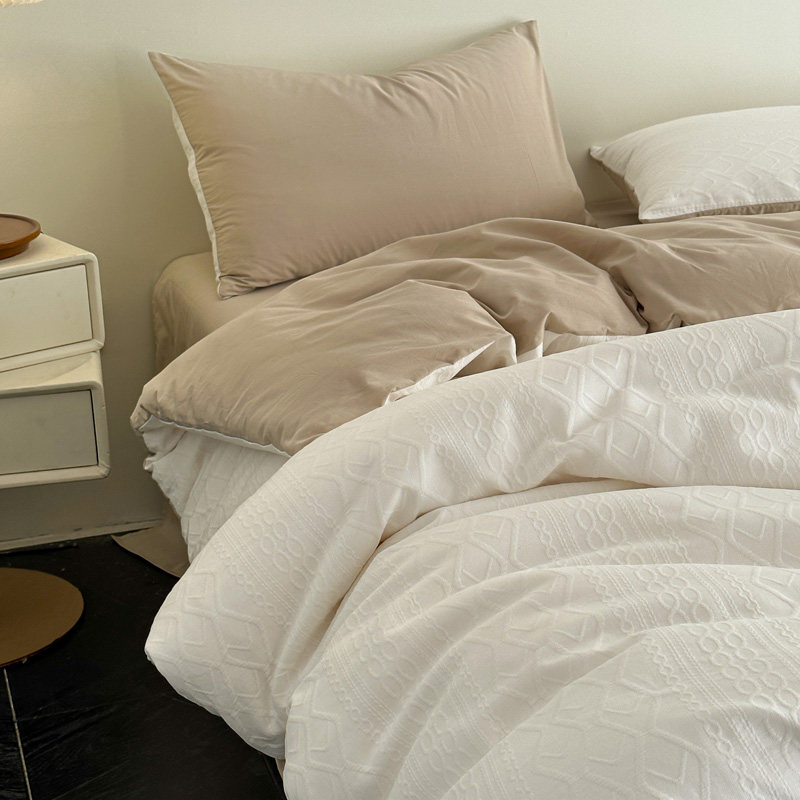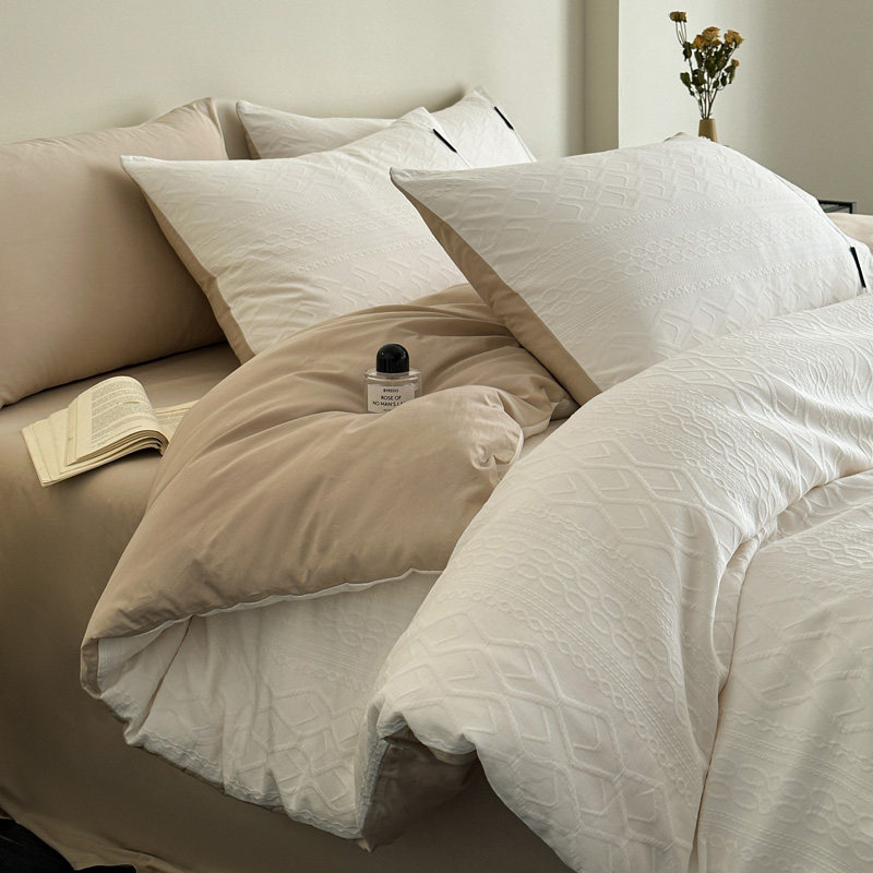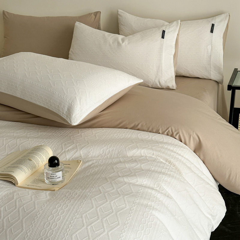 全棉A类空气层三层纱提花四件套纯棉色织纯色暖色柔软家纺套件