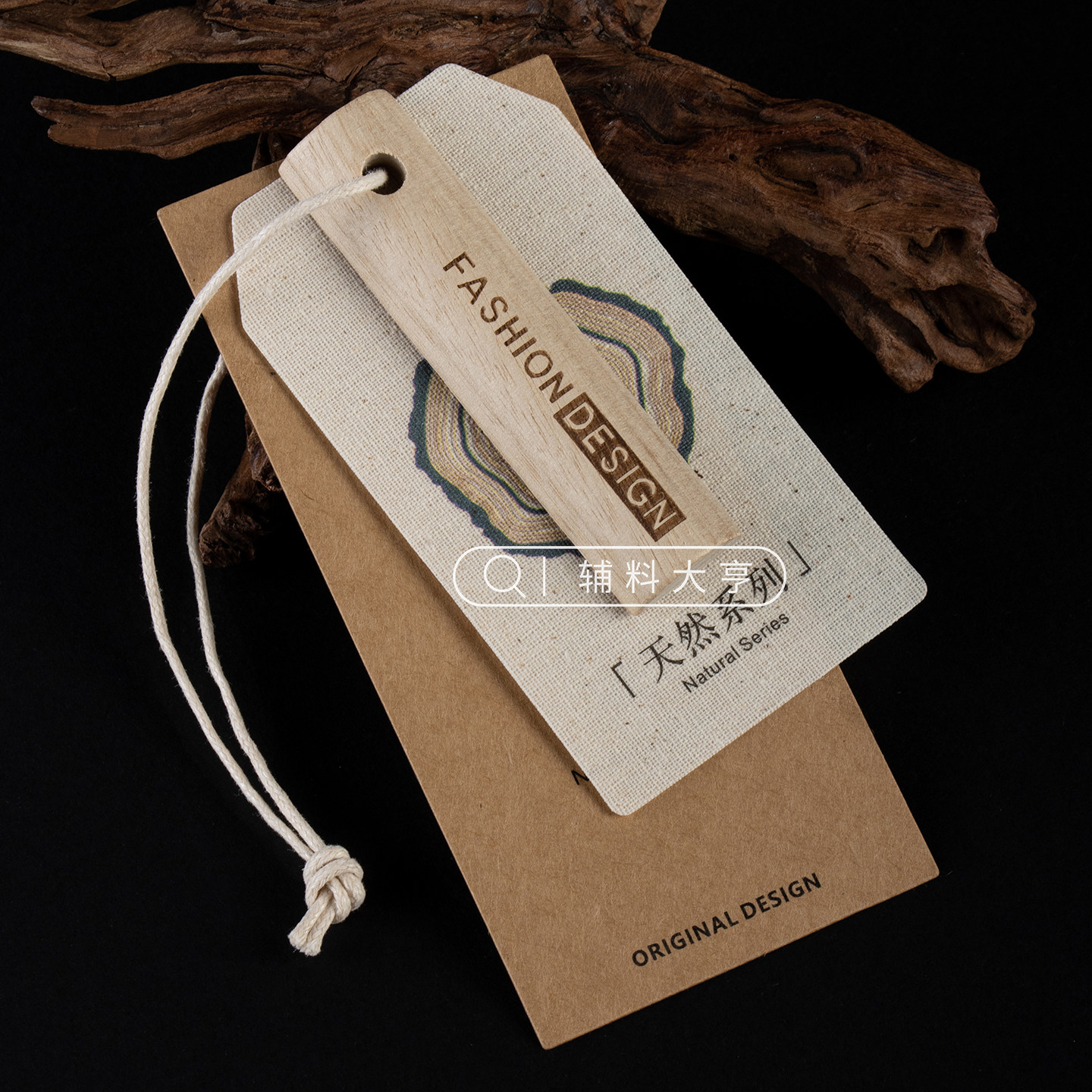 复古棉麻牛皮纸搭配自然香樟木服装吊牌定制LOGO商标签挂牌卡订做
