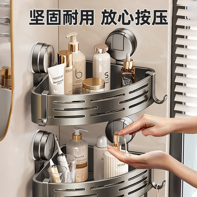卫生间置物架免打孔墙上吸盘三角篮厕所浴室沐浴露收纳架子淋浴房