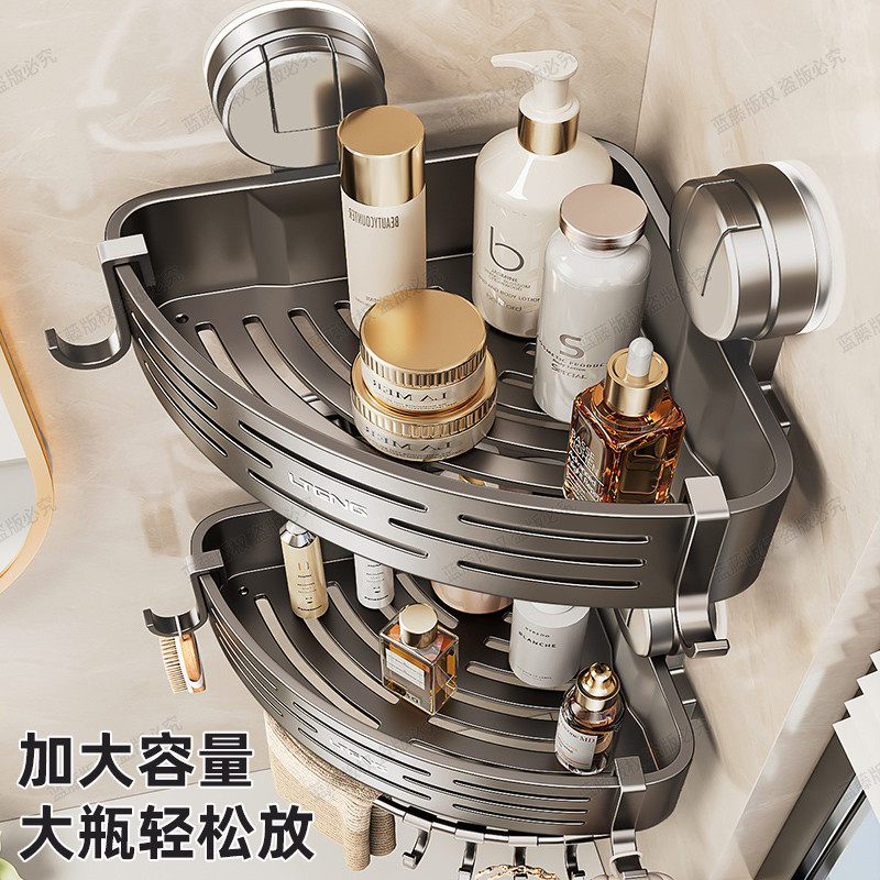 枪灰免打孔太空铝浴室置物架卫生间三角篮壁挂架洗手间墙角收纳架