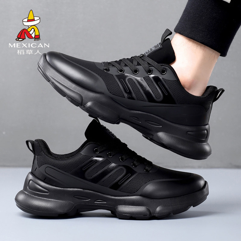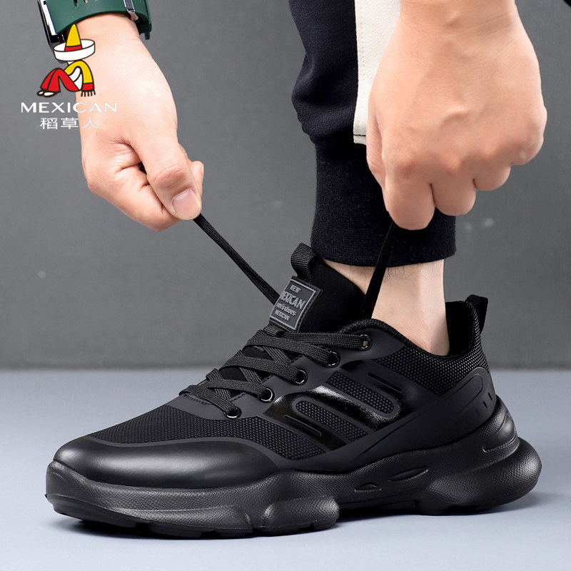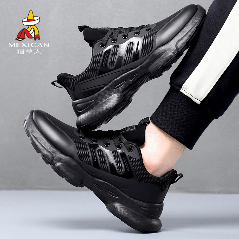 稻草人男鞋运动鞋加绒保暖男士百搭时尚舒适休闲潮鞋防滑黑色轻便