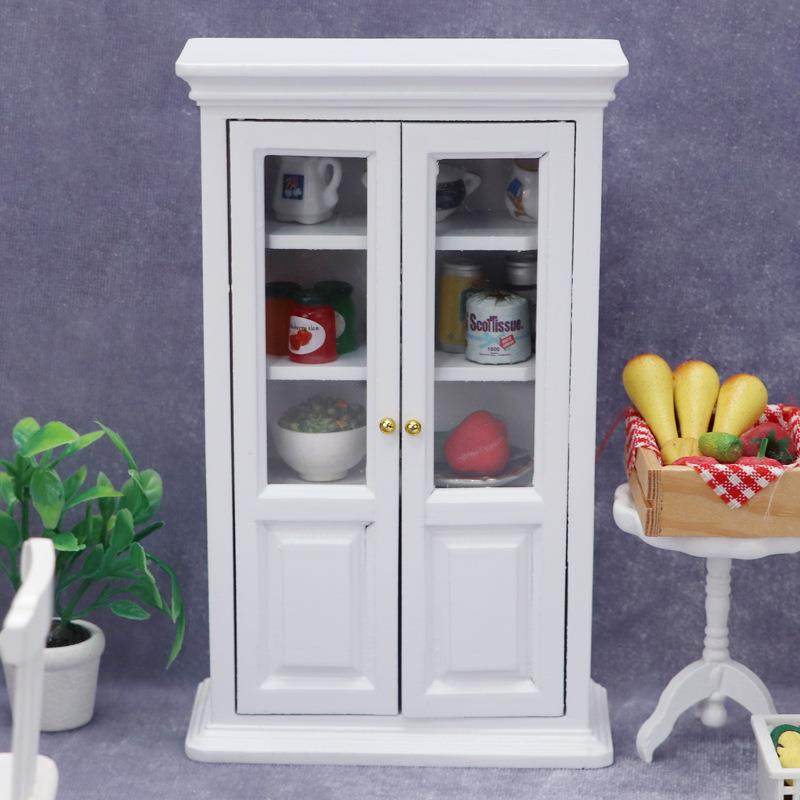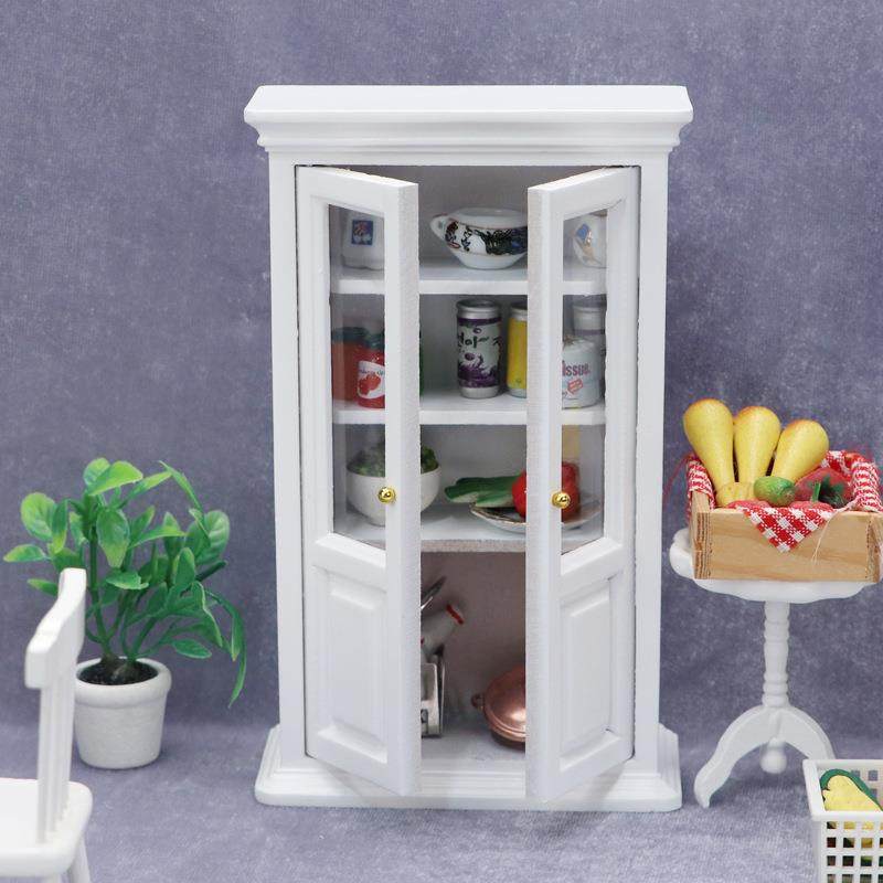 1:12娃娃屋dollhouse迷你家具白色立式书房书柜餐厅微场景柜子