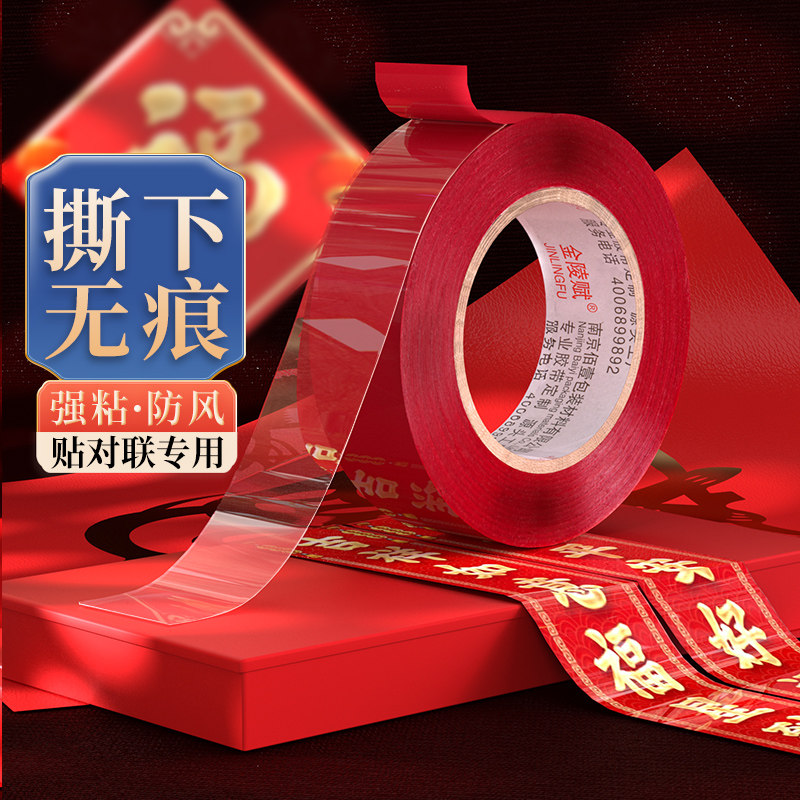 金陵赋贴春联对联双面胶带撕下不留痕迹网格透明胶布婚庆婚房装饰气球喜字福字年画高粘强力固定墙面专用胶带