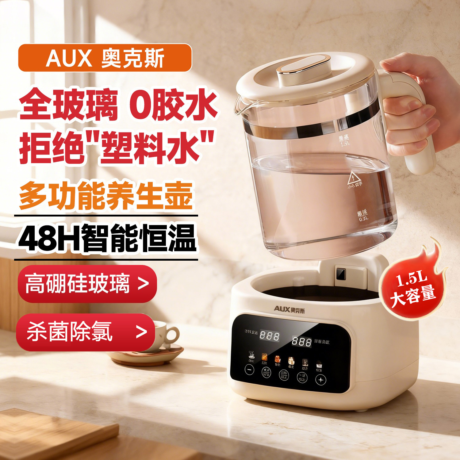 奥克斯全玻璃养生壶恒温调奶器暖奶机电热水壶煮花茶壶烧沸煮茶