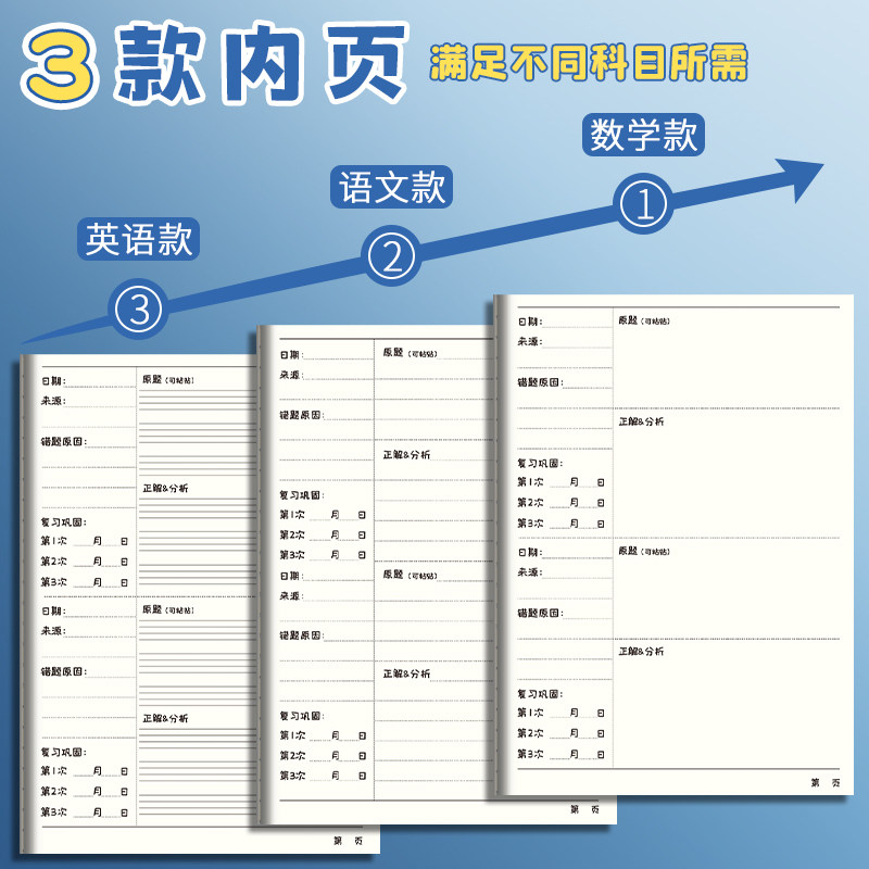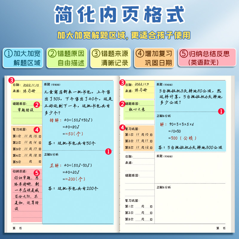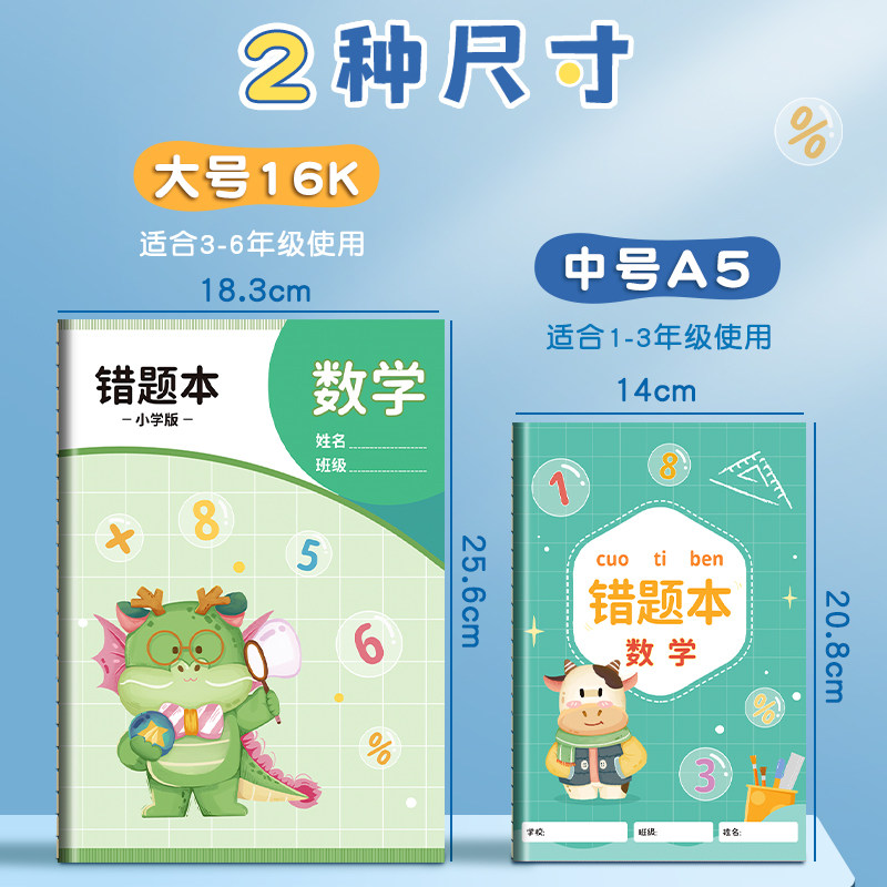 错题本小学生专用一年级二三四五六年级数学纠错本小学错题集语文整理英语改错本实用型错题收集更正本记错本