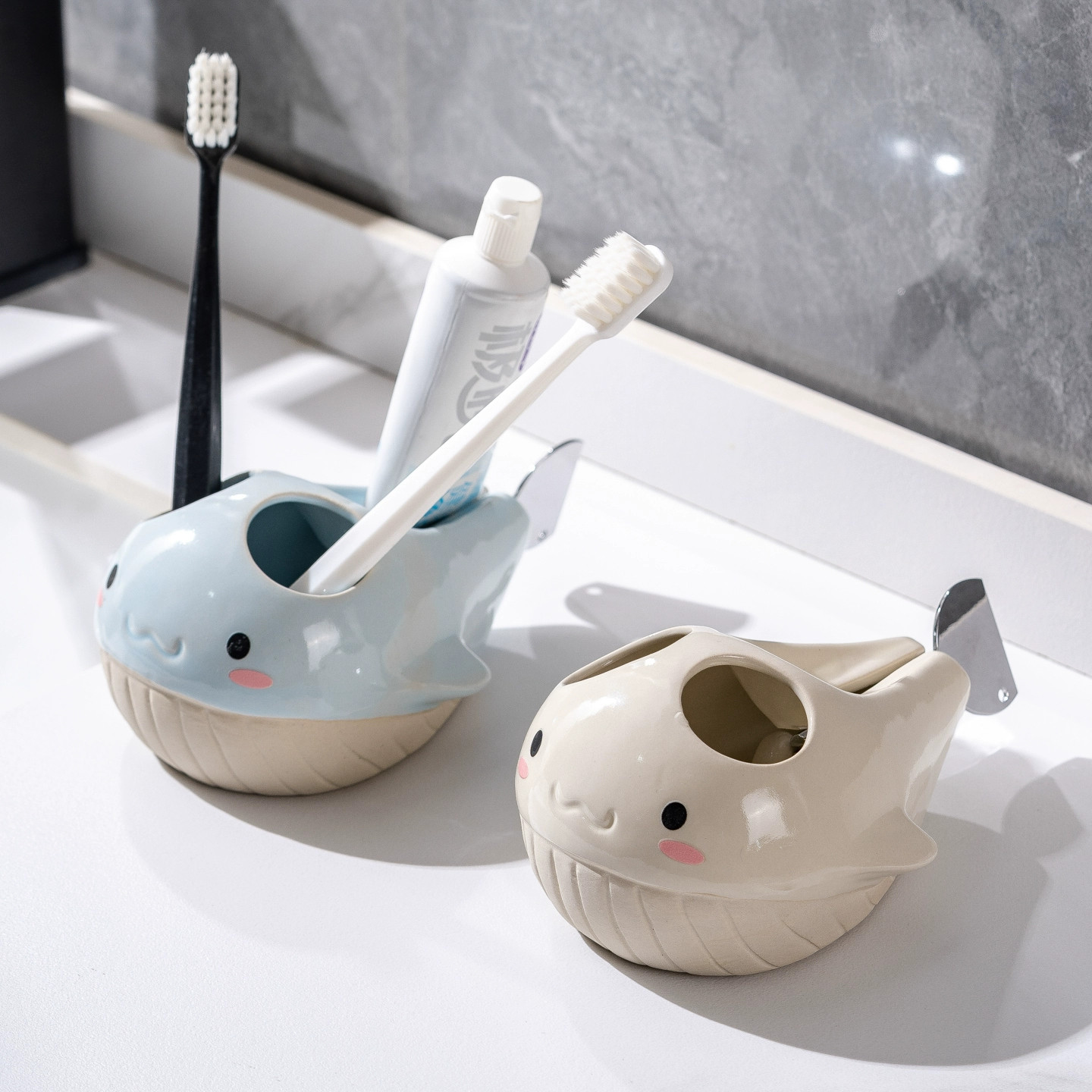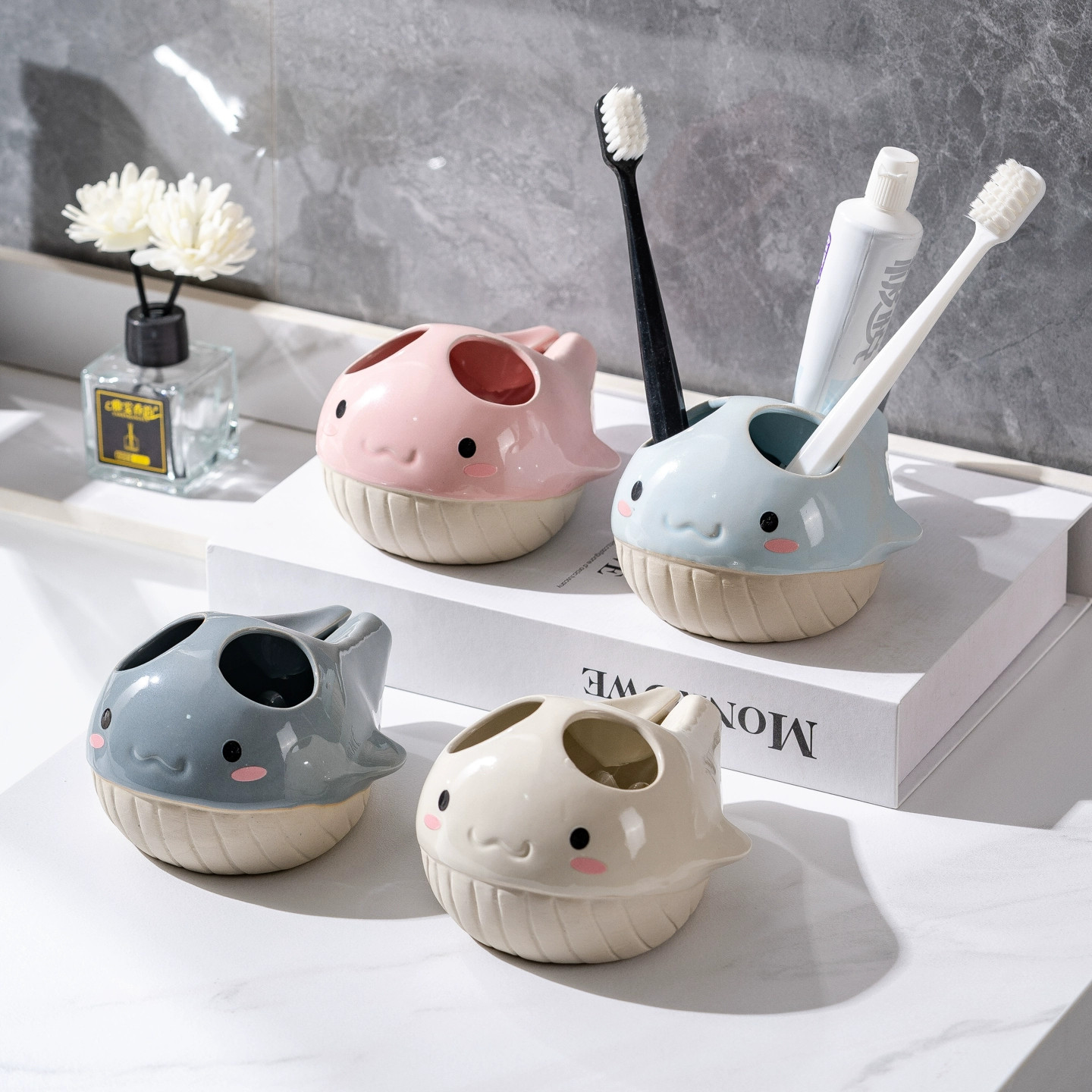 鲸鱼牙刷架卫生间牙具收纳筒手电动牙刷底座支架陶瓷置物架盘台面